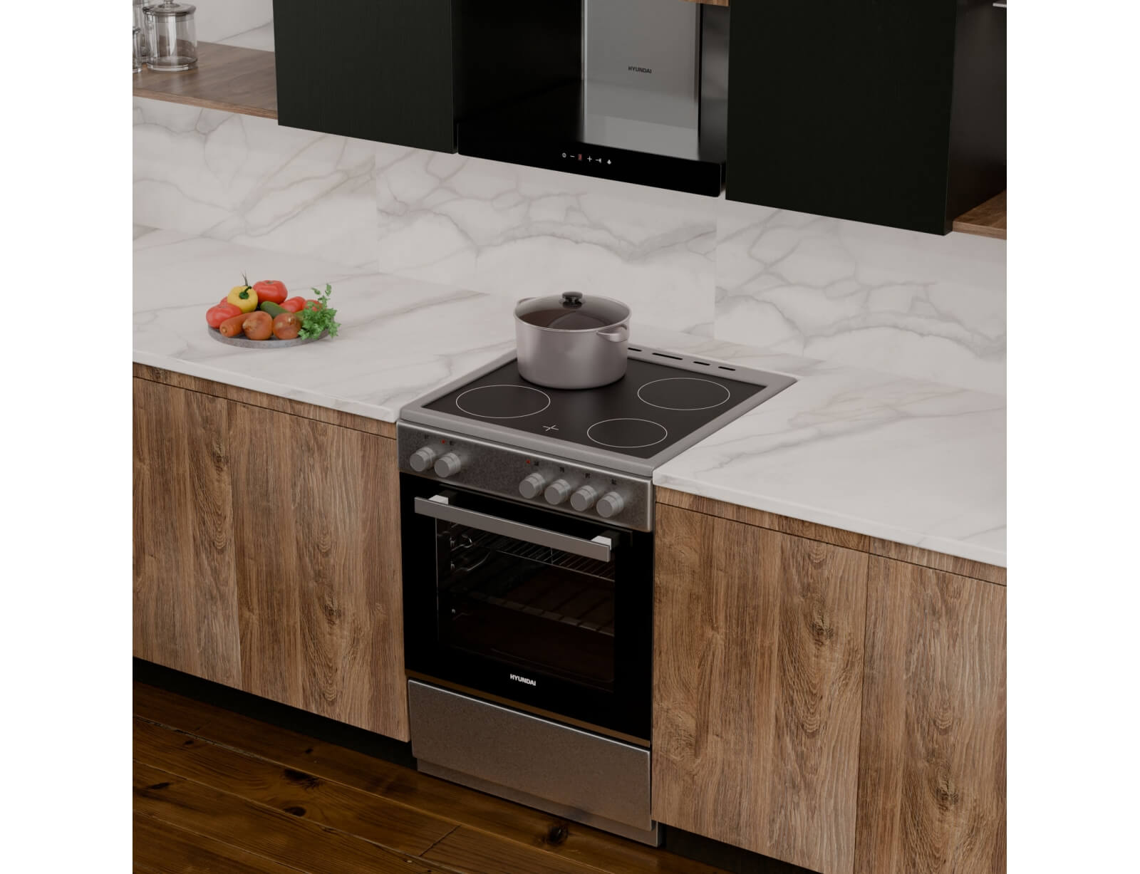 Κουζίνα Hyundai HCVC24V-7260VS/S με κεραμικές εστίες, χωρητικότητα φούρνου 69L, 5 λειτουργίες ψησίματος και ενεργειακή κλάση Α