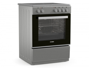 Κουζίνα Hyundai HCVC23-7260V/WP με πολυλειτουργικό φούρνο, χωρητικότητα φούρνου 69 λίτρα, ενεργειακή κλάση Α, 4 κεραμικές εστίες και 9 λειτουργίες ψησίματος.