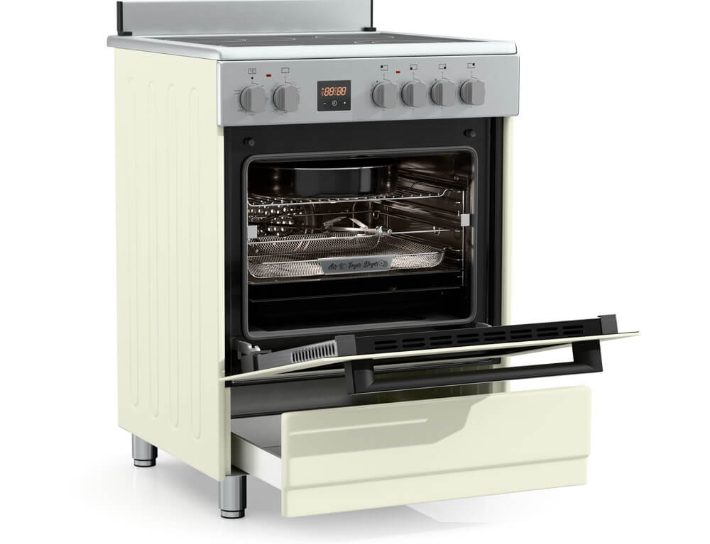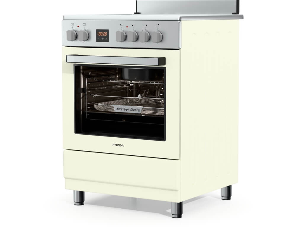 Η κουζίνα Hyundai HCVR24S-6060V/BZ έρχεται με προδιαγραφές ημιεπαγγελματικής κουζίνας με κεραμικές εστίες με 6 ζώνες, χωρητικότητα φούρνου 60 λίτρα, ενεργειακή κλάση Α, 10 λειτουργίες ψησίματος και ρετρό εμφάνιση.