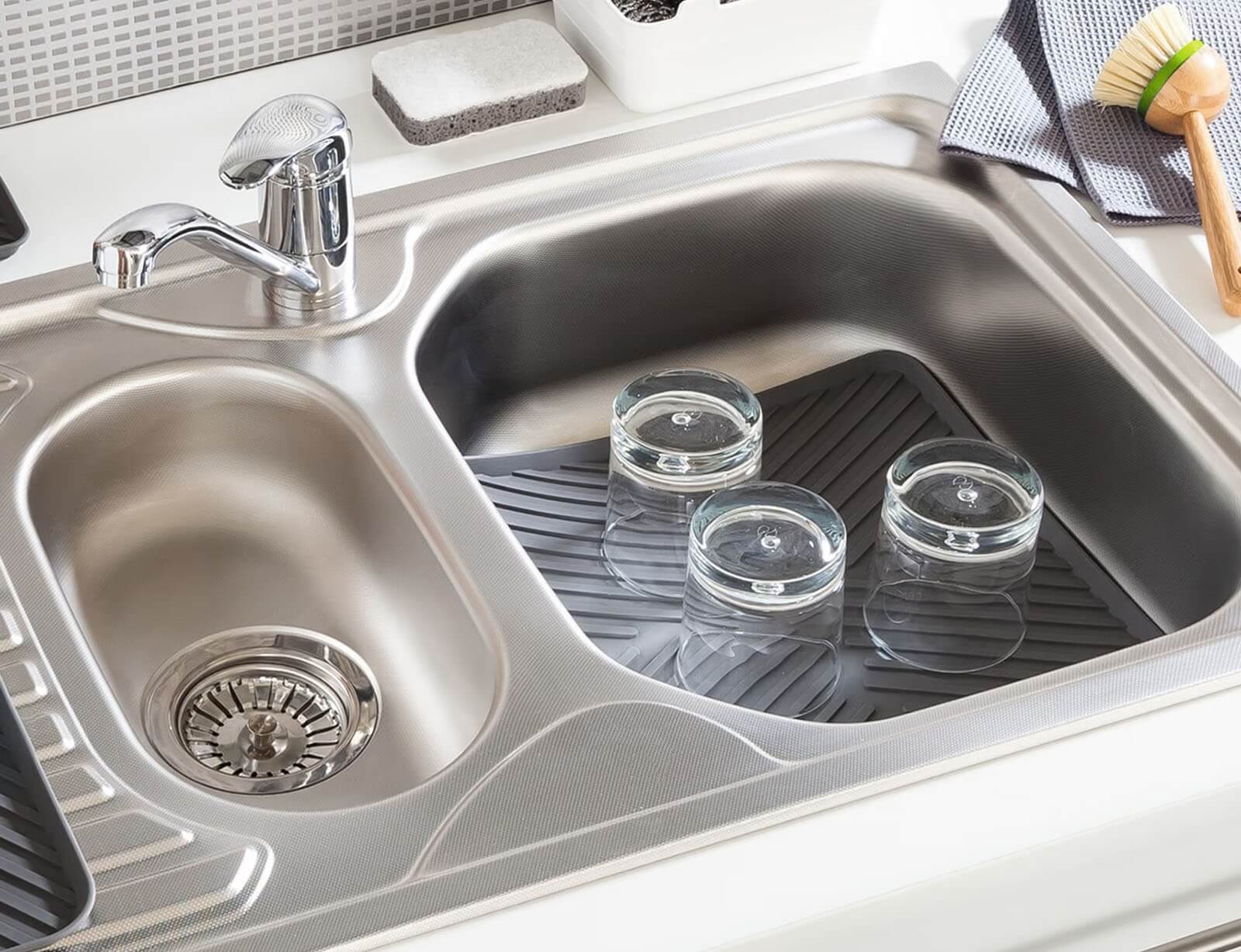 Διατηρήστε το νεροχύτη σας καθαρό και οργανωμένο με το δίσκο αποστράγγισης από τη 5five. Μπορεί να τοποθετηθεί στο πίσω μέρος του νεροχύτη σας για να βάλετε ποτήρια, επιφάνειες κοπής ή ό,τι άλλο επιθυμείτε για να στεγνώσουν. Είναι κατασκευασμένος από πλαστικό, το οποίο εμποδίζει την ολίσθηση των αντικειμένων, ενώ οι υπερυψωμένες άκρες του προστατεύουν τον πάγκο σας από νερό.