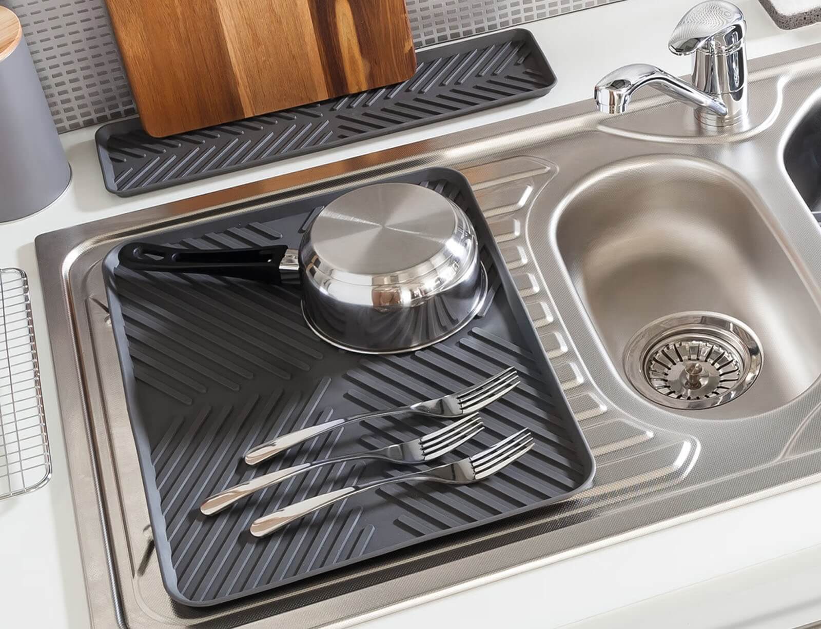 Διατηρήστε το νεροχύτη σας καθαρό και οργανωμένο με το δίσκο αποστράγγισης από τη 5five. Μπορεί να τοποθετηθεί στο πίσω μέρος του νεροχύτη σας για να βάλετε ποτήρια, επιφάνειες κοπής ή ό,τι άλλο επιθυμείτε για να στεγνώσουν. Είναι κατασκευασμένος από πλαστικό, το οποίο εμποδίζει την ολίσθηση των αντικειμένων, ενώ οι υπερυψωμένες άκρες του προστατεύουν τον πάγκο σας από νερό.