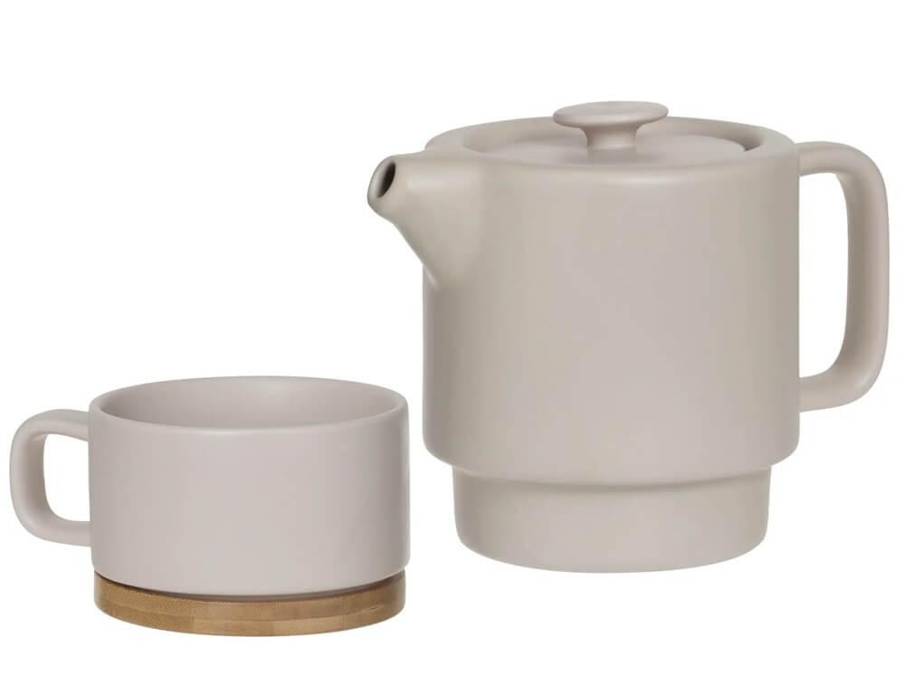 Eίναι κατασκευασμένη από κεραμικό, ένα υλικό το οποίο διατηρεί τη θερμότητα εσωτερικά. Διαθέτει αποσπώμενο εσωτερικό φίλτρο, από ανοξείδωτο ατσάλι, το οποίο απογειώνει την εργονομία αυτού του σκεύους και βάση από ξύλο μπαμπού.