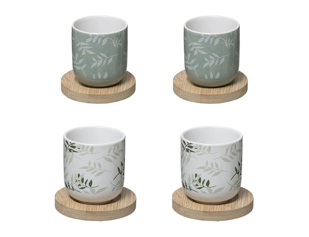 Σετ Κούπες & Ξύλινη Βάση Green Harmony Secret de Gourmet με χωρητικότητα 130ml - 8 τεμάχια