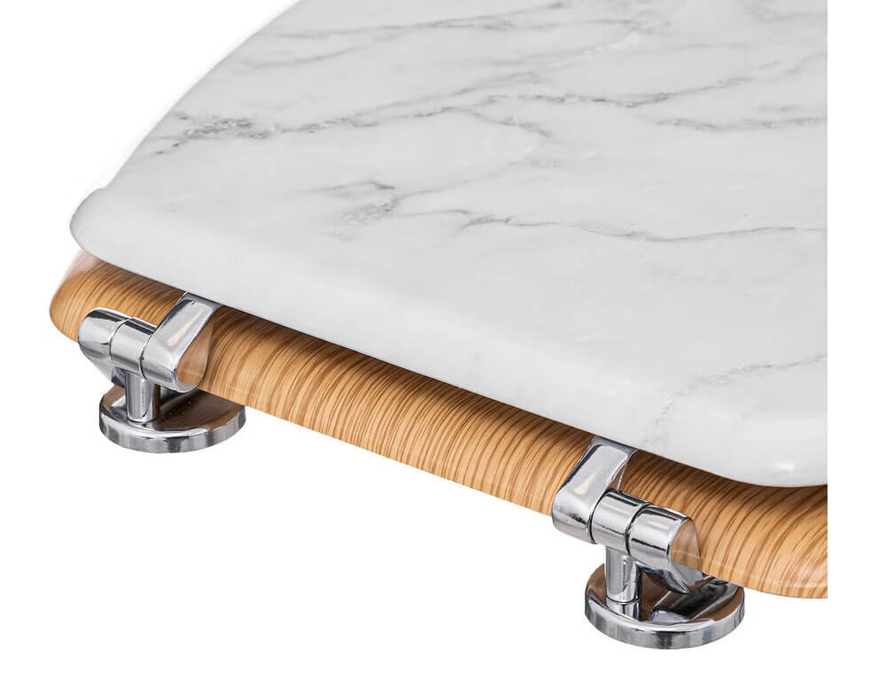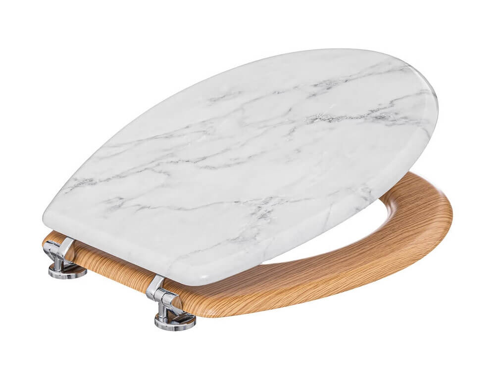 Πρακτικό καπάκι τουαλέτας από ανθεκτικό ξύλο MDF με μεντεσέδες από ανοξείδωτο ατσάλι. Πρόκειται για ένα πρακτικό αξεσουάρ μπάνιου ανθεκτικό σε χρώση, ξεθώριασμα και ξεφλούδισμα. Καθαρίστε με ζεστό σαπουνόνερο.