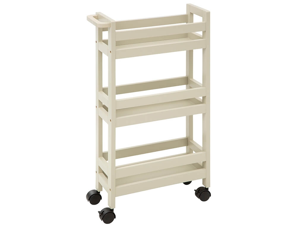 Οργανώστε και τακτοποιήστε το χώρο σας με το τρόλεϊ από την 5five. Διαθέτει 3 ράφια και είναι κατασκευασμένο από MDF_E1, το οποίο είναι εύκολο στη συντήρηση, αλλά παράλληλα και ανθεκτικό στις φθορές και τον χρόνο. Kάθε ράφι αντέχει βάρος μέχρι και 2 κιλά. Διαθέτει λαβή και 4 ρόδες για πιο εύκολη μεταφορά.