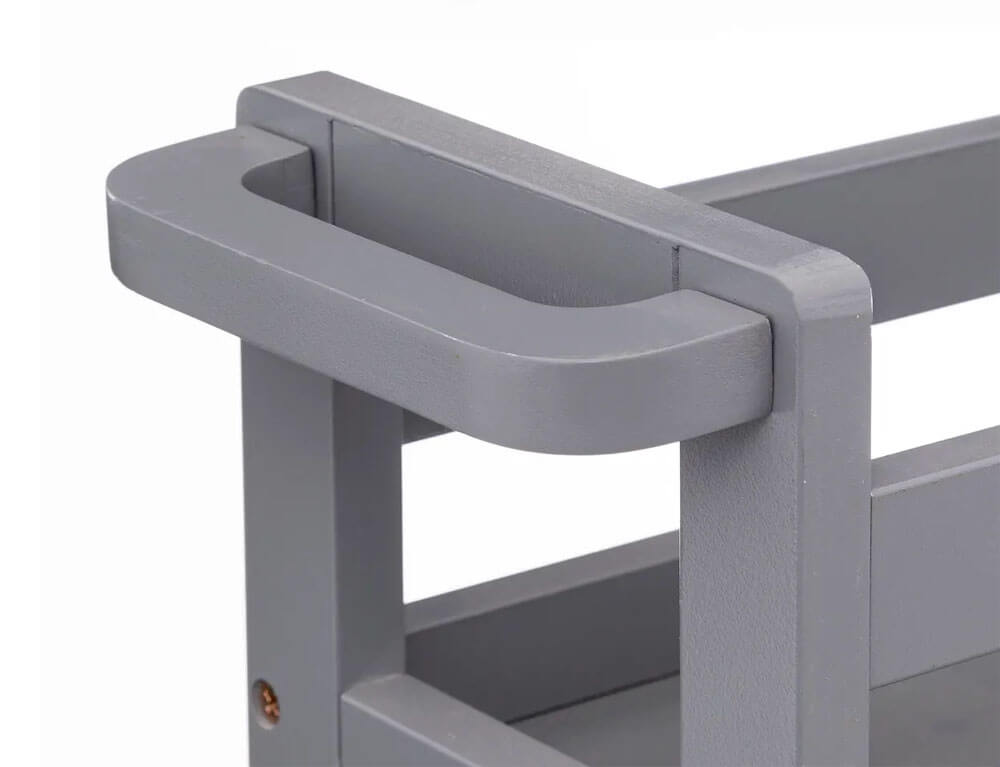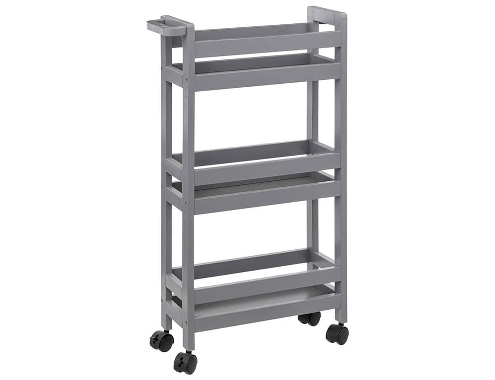 Οργανώστε και τακτοποιήστε το χώρο σας με το τρόλεϊ από την 5five. Διαθέτει 3 ράφια και είναι κατασκευασμένο από MDF_E1, το οποίο είναι εύκολο στη συντήρηση, αλλά παράλληλα και ανθεκτικό στις φθορές και τον χρόνο. Kάθε ράφι αντέχει βάρος μέχρι και 2 κιλά. Διαθέτει λαβή και 4 ρόδες για πιο εύκολη μεταφορά.