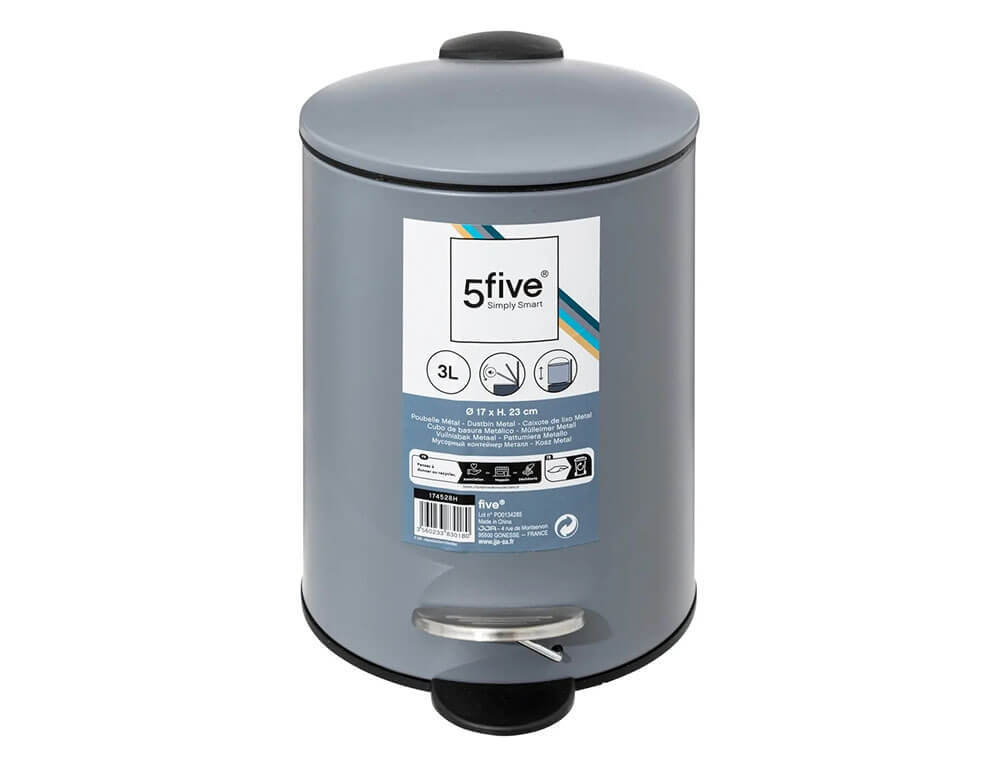 Κάδος απορριμμάτων χωρητικότητας 3lt. Είναι κατασκευασμένος από μεταλλικό υλικό σε γκρι χρώμα που τον καθιστά ιδιαίτερα ανθεκτικό. Διαθέτει εσωτερικό πλαστικό δοχείο για εύκολο πλύσιμο και έχει αθόρυβο κλείσιμο.
