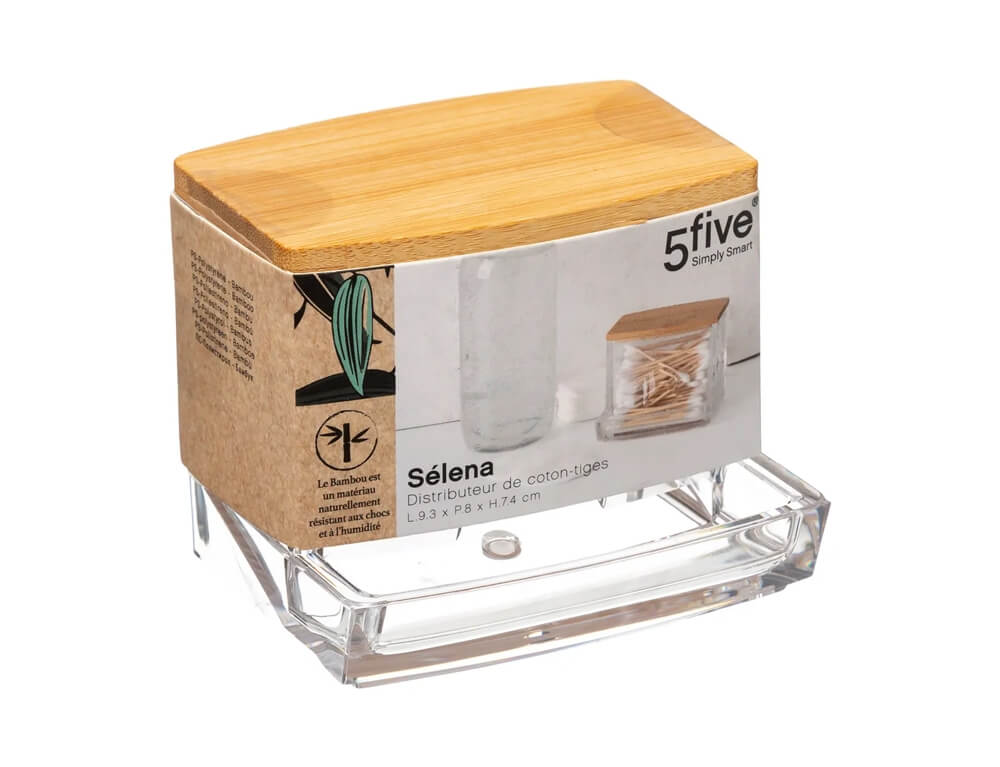 Δοχείο Οργάνωσης Μake up 5Five με καπάκι, από Ξύλο Μπαμπού, 9.6x8.6x7.4cm - Απόχρωση Ξύλου