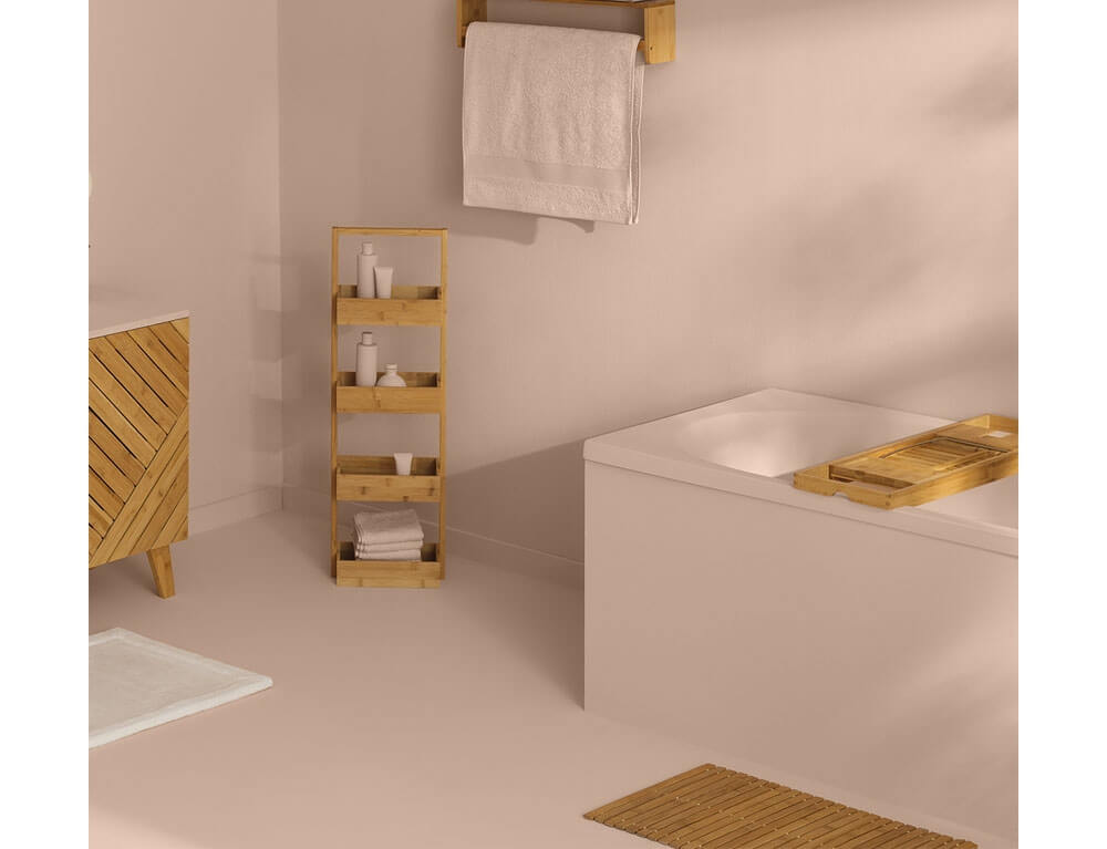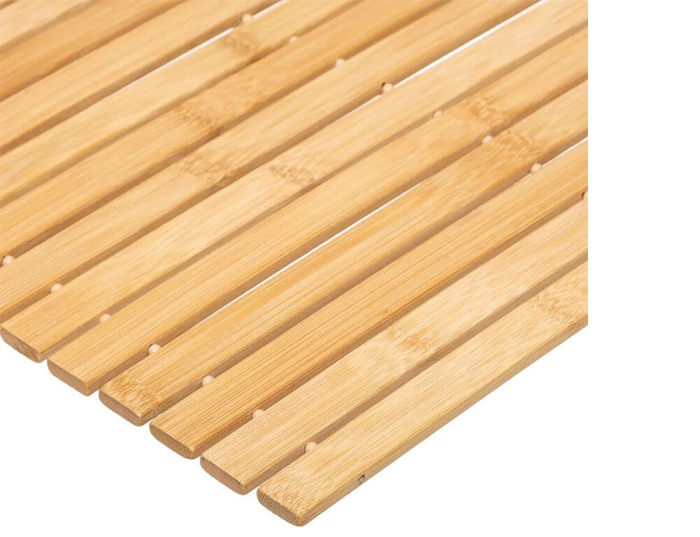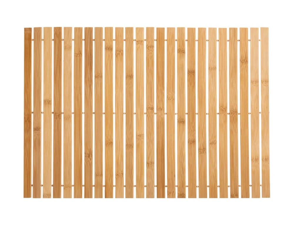 Το πατάκι μπάνιου από την εταιρεία 5five είναι η κατάλληλη προσθήκη στο μπάνιο σας. Είναι κατασκευασμένo από ξύλο μπαμπού, ένα υλικό ανθεκτικό στην υγρασία και τα χτυπήματα, που δεν σαπίζει και απαιτεί ελάχιστη ή καθόλου συντήρηση. Διαθέτει αντιολισθητικά τσοχάκια στην πίσω πλευρά και μπορεί να τυλιχτεί ρε ρολό για εύκολη αποθήκευση.