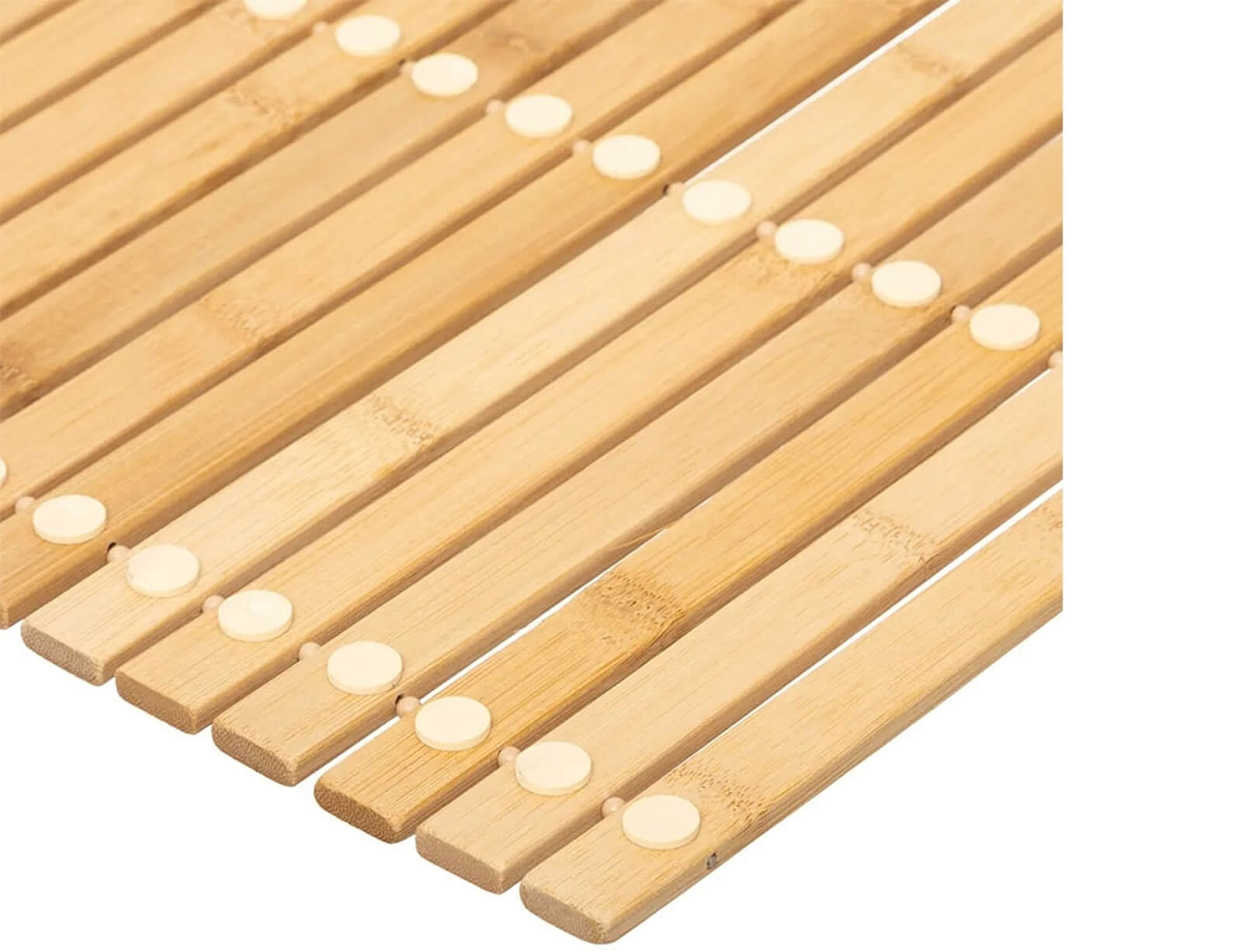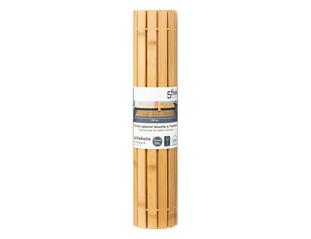 Το πατάκι μπάνιου από την εταιρεία 5five είναι η κατάλληλη προσθήκη στο μπάνιο σας. Είναι κατασκευασμένo από ξύλο μπαμπού, ένα υλικό ανθεκτικό στην υγρασία και τα χτυπήματα, που δεν σαπίζει και απαιτεί ελάχιστη ή καθόλου συντήρηση. Mπορεί να τυλιχτεί ρε ρολό για εύκολη αποθήκευση. Διαθέτει αντιολισθητικά τσοχάκια στην πίσω πλευρά και μπορεί να τυλιχτεί ρε ρολό για εύκολη αποθήκευση.