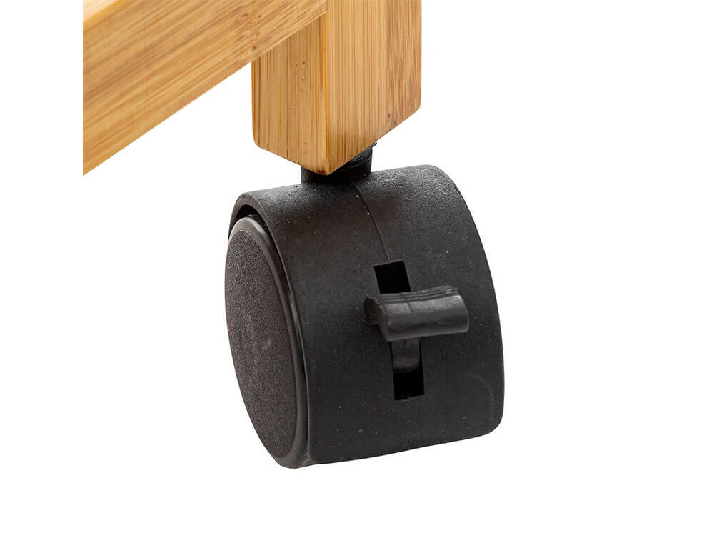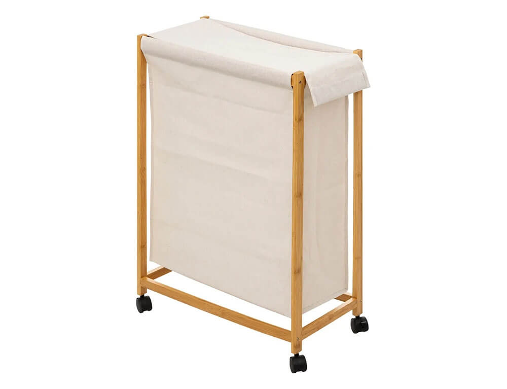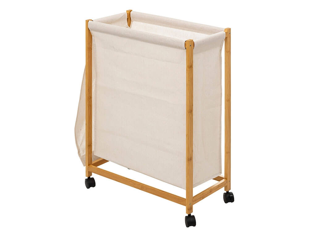 Καλάθι απλύτων με σκελετό από ξύλο bamboo και πολυεστερικό εκρού ύφασμα. Έχει στενό σχεδιασμό ώστε να χωράει και στους πιο μικρούς χώρους. Η απλυτοθήκη κλείνει στο πάνω μέρος και μπορεί να αφαιρεθεί και να πλυθεί εύκολα. Διαθέτει 4 ροδάκια για πιο εύκολη και γρήγορη μεταφορά.