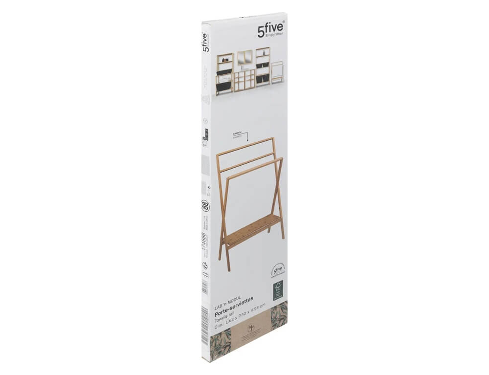 Επιδαπέδια Κρεμάστρα Μπάνιου 5five με 3 θέσεις στήριξης & 1 ράφι - Ξύλο Bamboo - 60x36x94cm - Απόχρωση Ξύλου