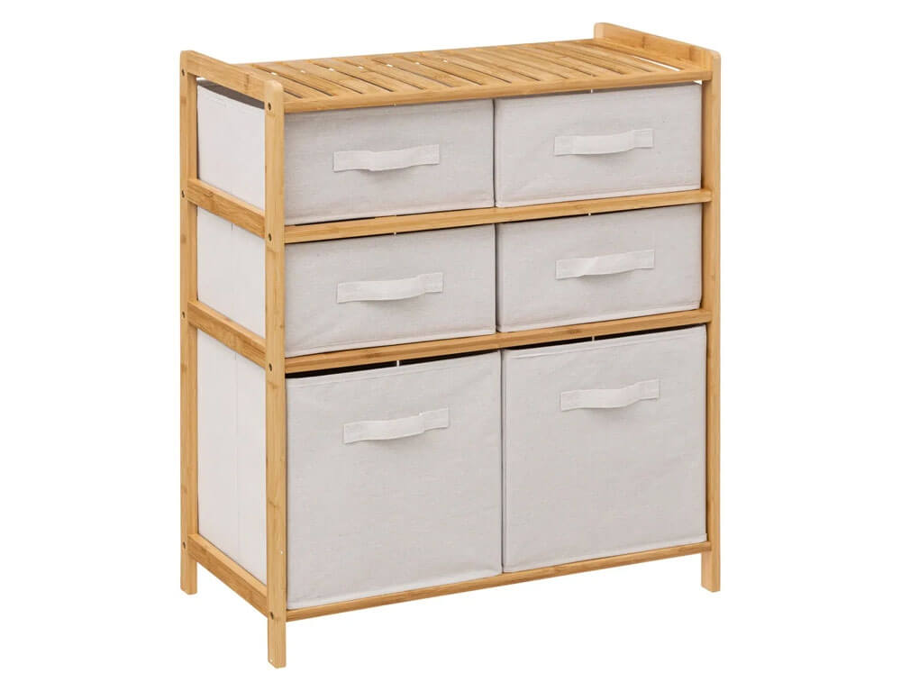 Επιδαπέδια Ραφιέρα Μπάνιου 5five με 6 κουτιά αποθήκευσης, από Ξύλο Bamboo, 66x33x78.5cm