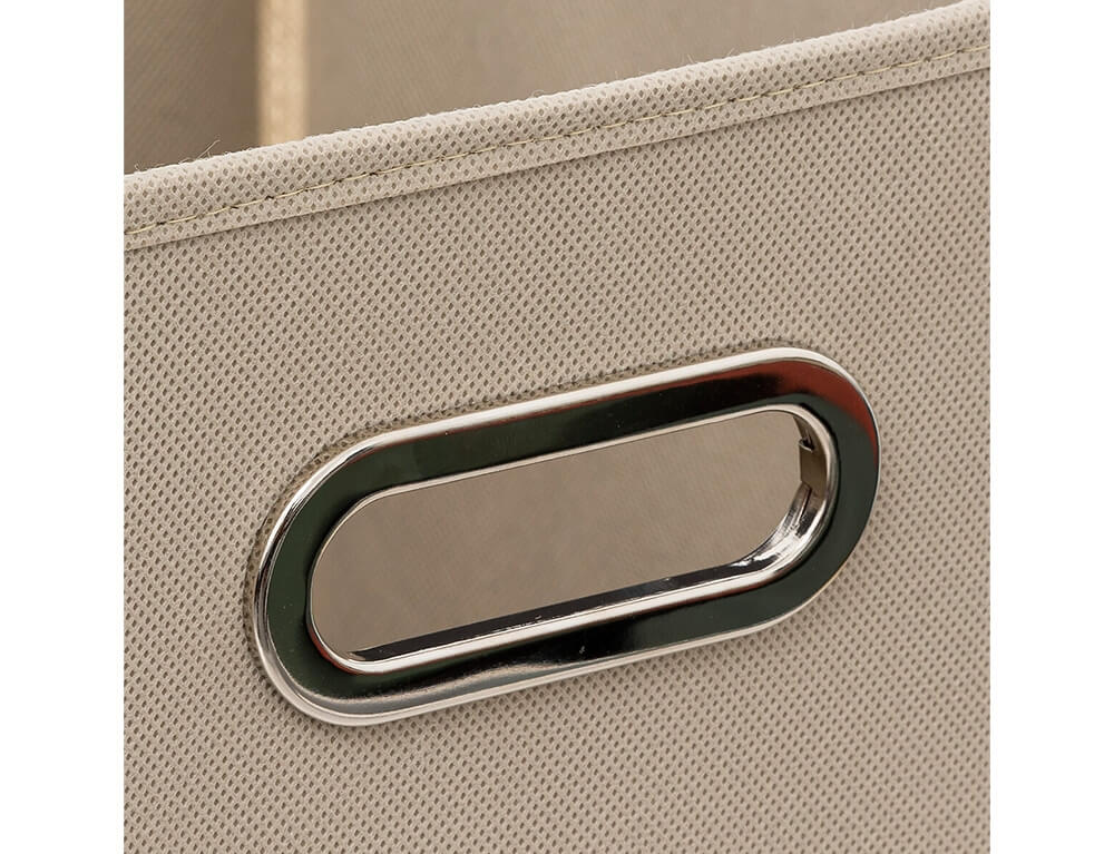Οργανώστε και τακτοποιήστε το χώρο σας με το κουτί τακτοποίησης. Διαθέτει δύο εγκοπές ώστε να γίνεται πιο εύκολα η μεταφορά του και είναι πτυσσόμενο οπότε μπορείτε να το διπλώσετε και να το αποθηκεύσετε. Είναι κατασκευασμένο εξωτερικά από ύφασμα non woven και εσωτερικά από χαρτόνι για να κρατάει το σχήμα του και μπορείτε να το καθαρίσετε με ένα βρεγμένο πανί. Ιδανικό για να κρατήσει οργανωμένα τα αντικείμενά σας, δίνοντας παράλληλα μια μοντέρνα πινελιά στην διακόσμηση σας.