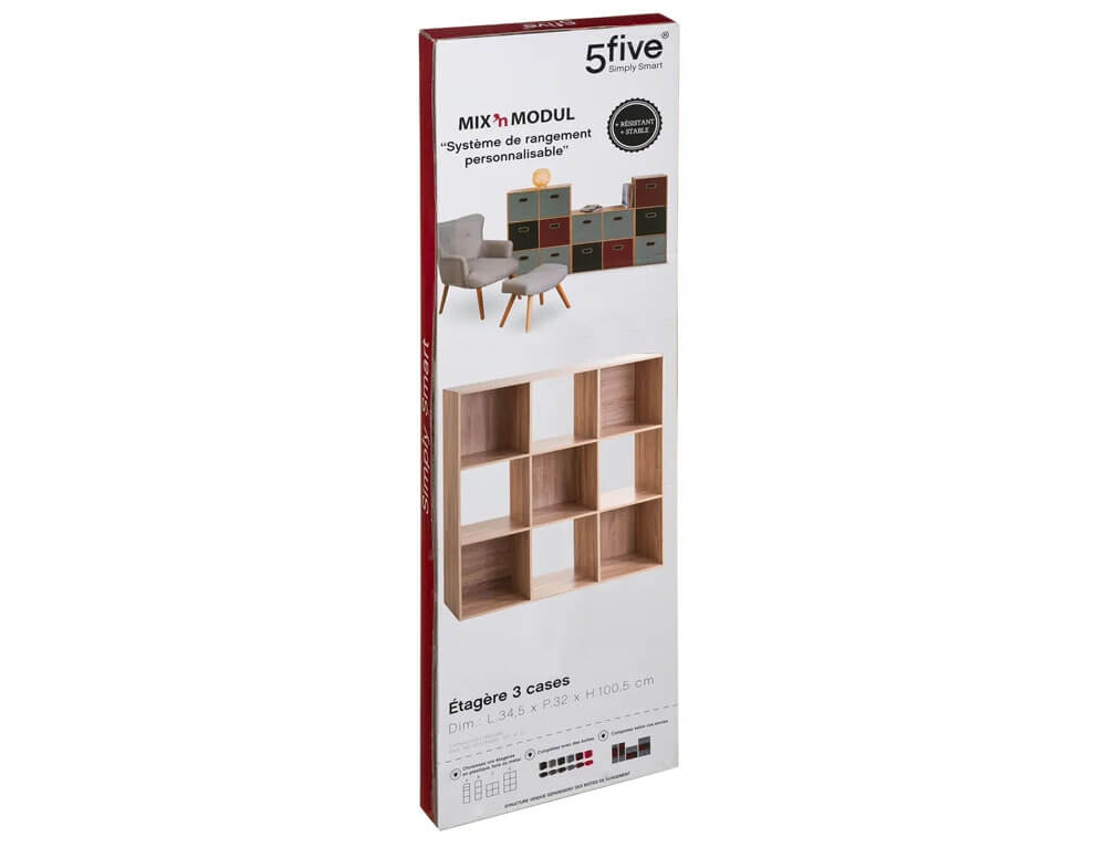 Ραφιέρα Οργάνωσης 5five με 9 ράφια και διαστάσεις 100.5x32x100.5cm - Συνδυάζεται με κουτιά αποθήκευσης - Σε απόχρωση Ξύλου