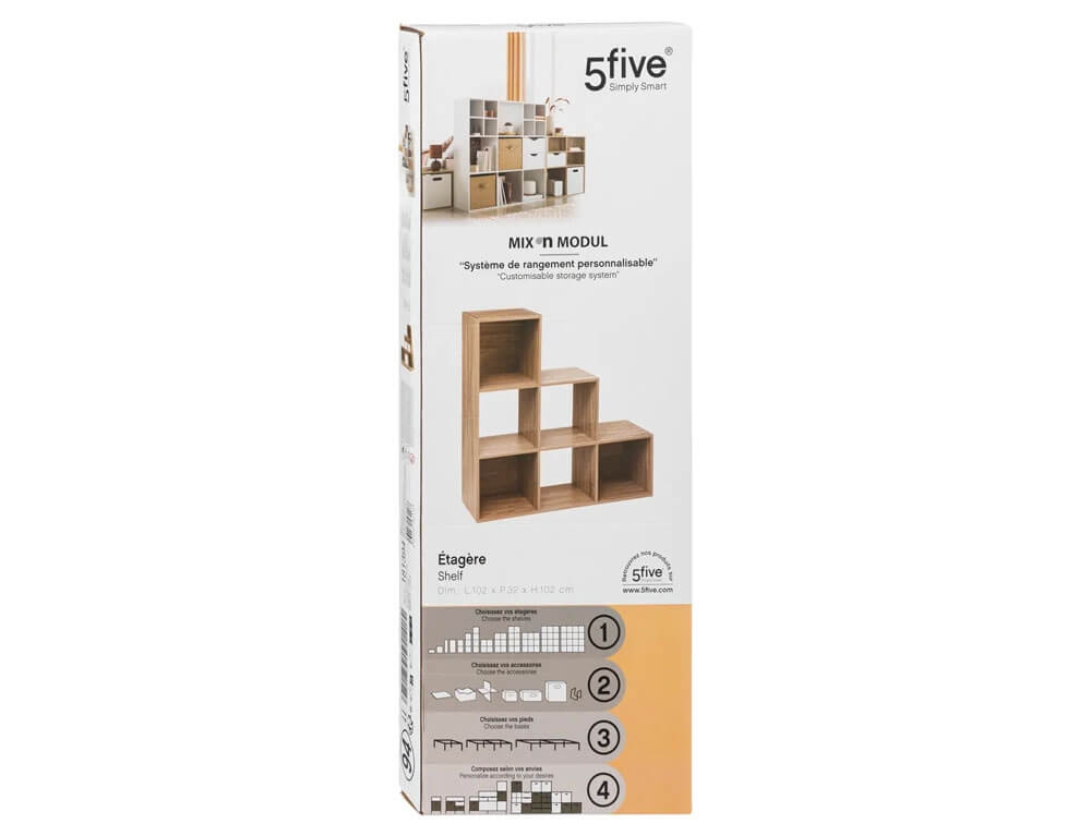 Ραφιέρα Οργάνωσης 5five με 6 ράφια και διαστάσεις 102x32x102cm - Συνδυάζεται με κουτιά αποθήκευσης - Σε απόχρωση Ξύλου