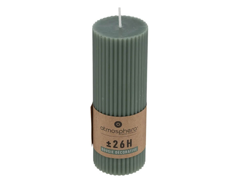 Διακοσμήστε και δώστε λάμψη σε κάθε δωμάτιο με το κερί από την Atmosphera. Με τον ιδιαίτερο ανάγλυφο σχεδιασμό του σε κυλινδρικό σχήμα και το χρώμα του σε πράσινη απόχρωση θα δημιουργήσετε μια κομψή και εκλεπτυσμένη νότα σε κάθε γωνία του χώρου σας. H διάρκεια καύσης του είναι περίπου 26 ώρες.