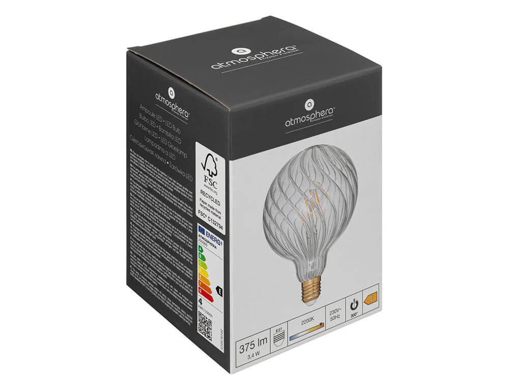 Λάμπα LED G125 Atmosphera, για ντουί E27, 3.4W, 2200K, Θερμό Λευκό