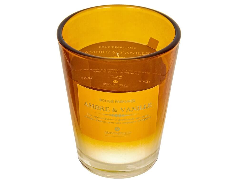 Διακοσμήστε και δώστε λάμψη σε κάθε δωμάτιο με το αρωματικό κερί από την Atmosphera. Με το ιδιαίτερο άρωμά του θα γίνει το περιβάλλον σας πιο ευχάριστο και χαλαρωτικό. Eίναι τοποθετημένο σε χρωματιστό γυάλινο βαζάκι, το οποίο θα δώσει επιπλέον χρώμα στο χώρο σας. H διάρκεια καύσης του είναι περίπου 38 ώρες.
