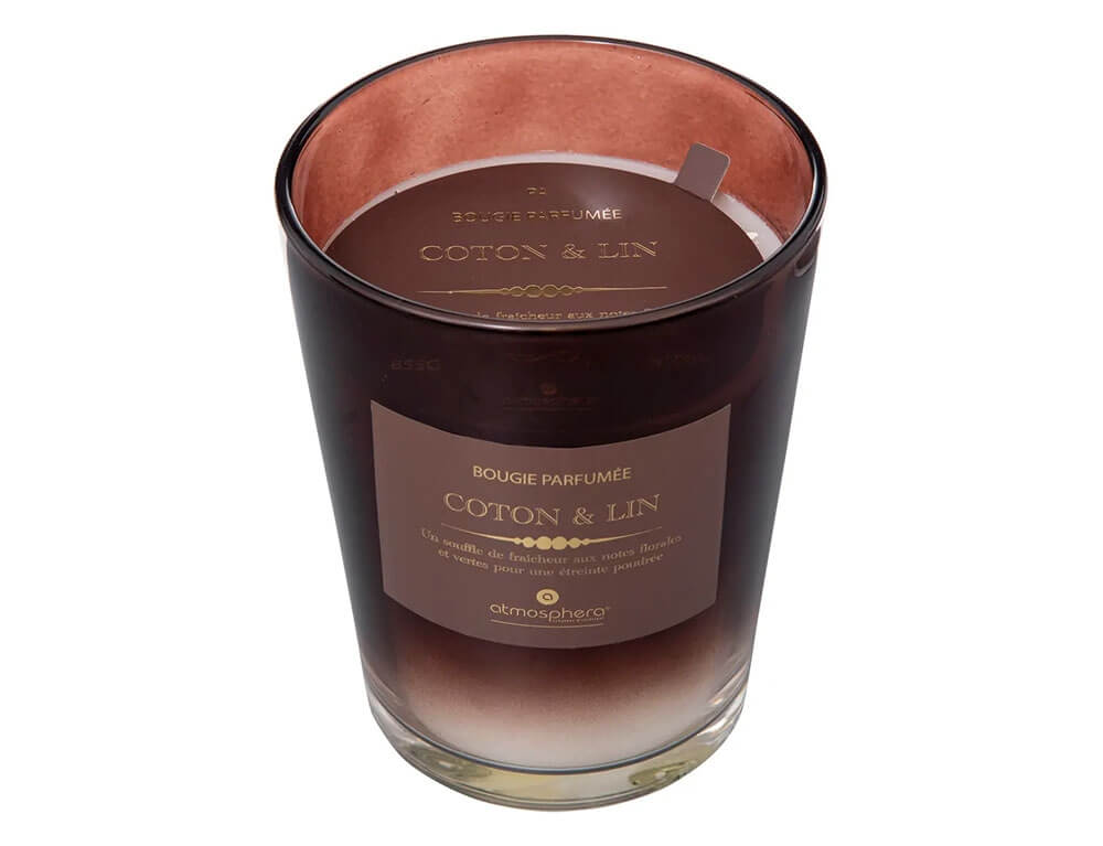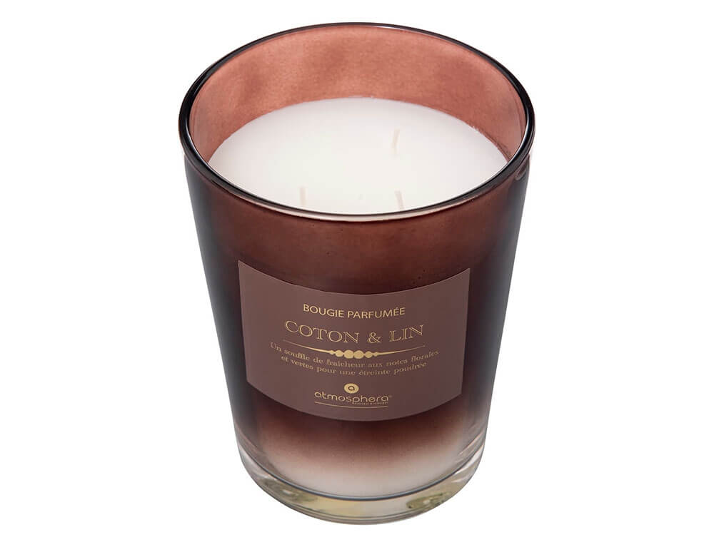 Διακοσμήστε και δώστε λάμψη σε κάθε δωμάτιο με το αρωματικό κερί από την Atmosphera. Με το ιδιαίτερο άρωμά του θα γίνει το περιβάλλον σας πιο ευχάριστο και χαλαρωτικό. Eίναι τοποθετημένο σε χρωματιστό γυάλινο βαζάκι, το οποίο θα δώσει επιπλέον χρώμα στο χώρο σας. Διαθέτει 3 φυτίλια για πιο ομοιόμορφη καύση και διαρκεί περίπου 100 ώρες.
