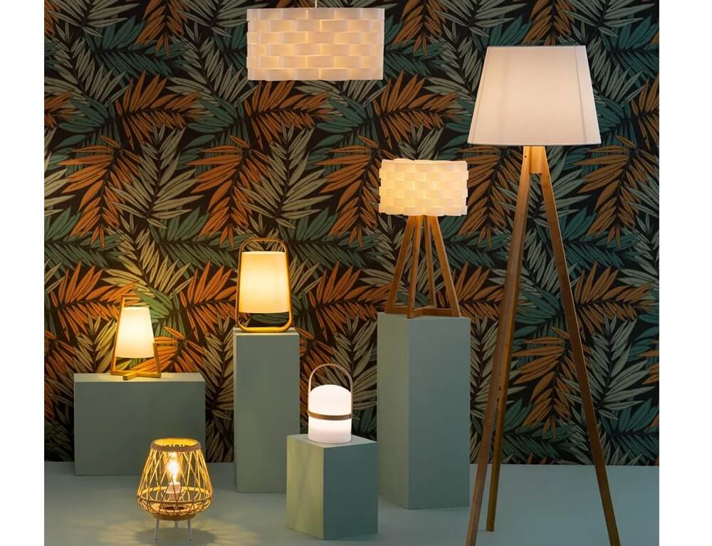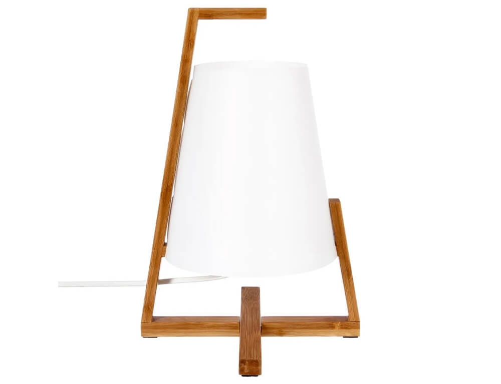 Μοντέρνο επιτραπέζιο φωτιστικό Atmosphera με καφέ καπέλο και βάση σε καφέ χρώμα, από ξύλο. Διαθέτει ντουί για λαμπτήρες E14.