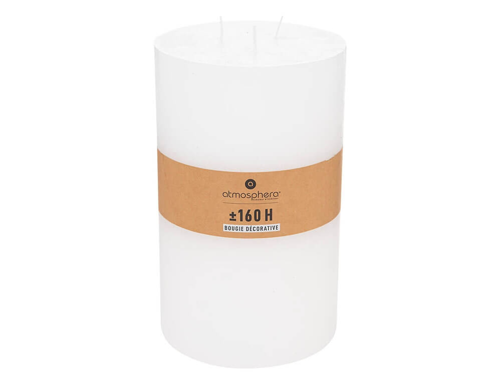 Διακοσμήστε και δώστε λάμψη σε κάθε δωμάτιο με το κερί από την Atmosphera. Με τον απλό σχεδιασμό του σε κυλινδρικό σχήμα και το χρώμα του σε λευκή απόχρωση θα δημιουργήσετε μια μίνιμαλ και εκλεπτυσμένη νότα σε κάθε γωνία του χώρου σας. Διαθέτει 3 φυτίλια για πιο ομοιόμορφη καύση και διαρκεί περίπου 160 ώρες.