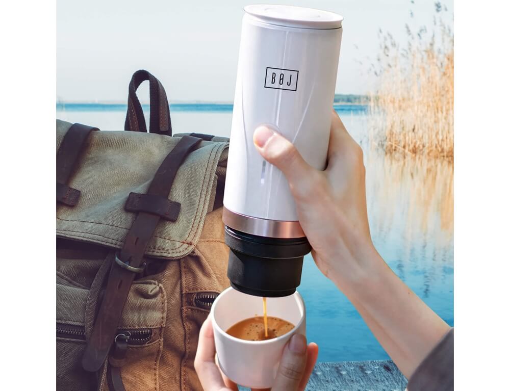 Συμπαγές και εύκολο στη μεταφορά, περιλαμβάνει προστατευτική θήκη και καλώδιο USB Type-C. Μεγάλη διάρκεια μπαταρίας ποθ ετοιμάζει έως και 5/100 καφέδες με ζεστό/κρύο νερό με μία μόνο φόρτιση. Διαθέτει φωτεινή ένδειξη μπαταρίας. Εγγυάται τέλεια εκχύλιση των αρωμάτων και των γεύσεων του καφέ χάρη στην πίεση 20 bar. Εσωτερικό από ανοξείδωτο ατσάλι υψηλής ποιότητας που διατηρεί την καθαρότητα και τη γεύση του καφέ. Δεξαμενή νερού χωρητικότητα έως 80 ml.