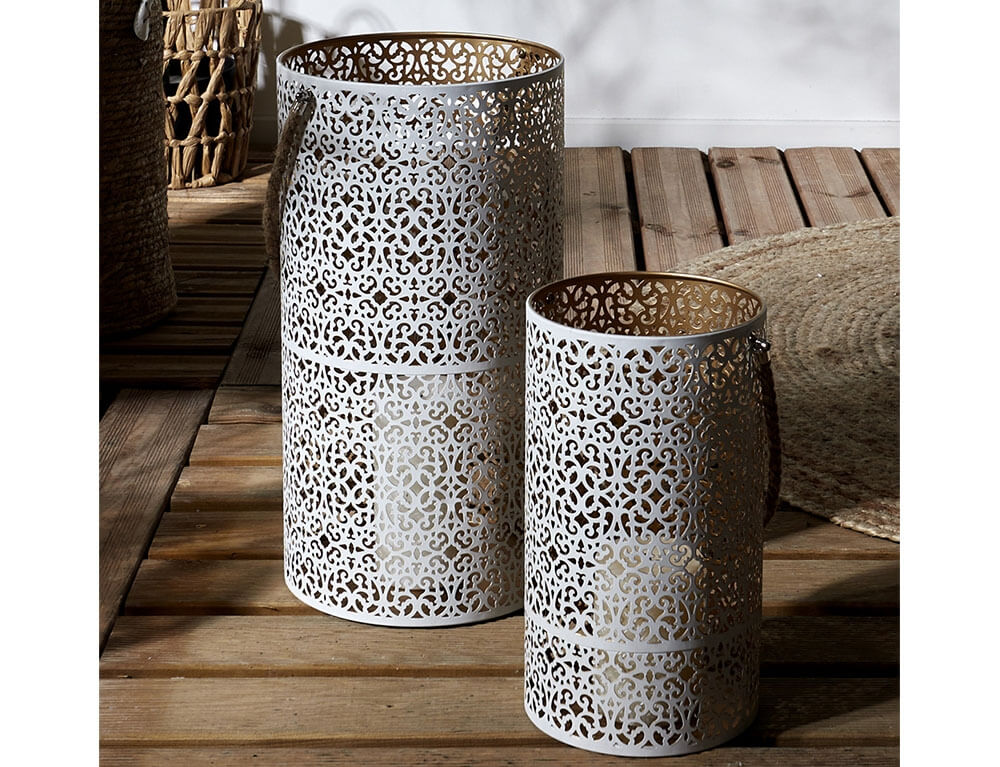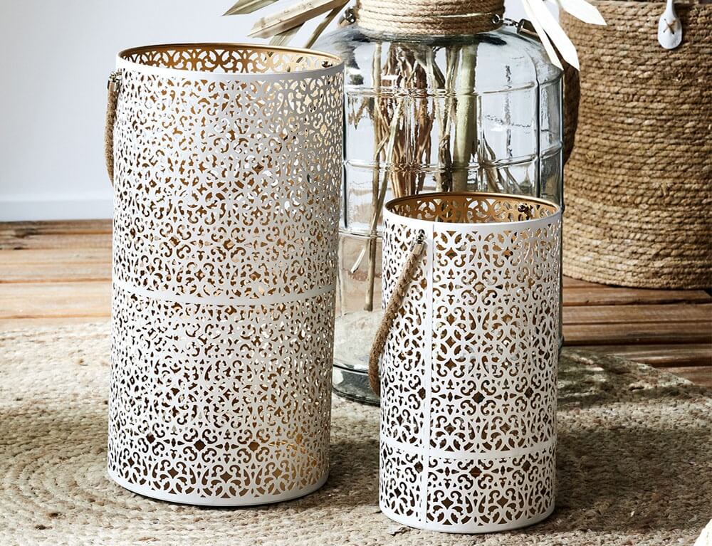 Δημιούργησε μια ζεστή και ευχάριστη ατμόσφαιρα με το σετ με 2 διακοσμητικά φανάρια. Ο σκελετός του είναι κατασκευασμένος από μέταλλο για να είναι πιο σταθερό και ανθεκτικό και το ιδιαίτερο σχέδιο του θα δώσει μια αίσθηση boho στο χώρο σας. Διαθέτει χερούλι από σχοινί για πιο εύκολη μετακίνηση, αλλά και για να το κρεμάσετε όπου επιθυμείτε.