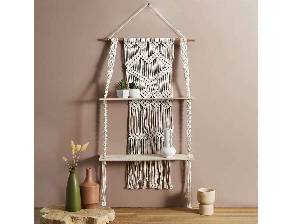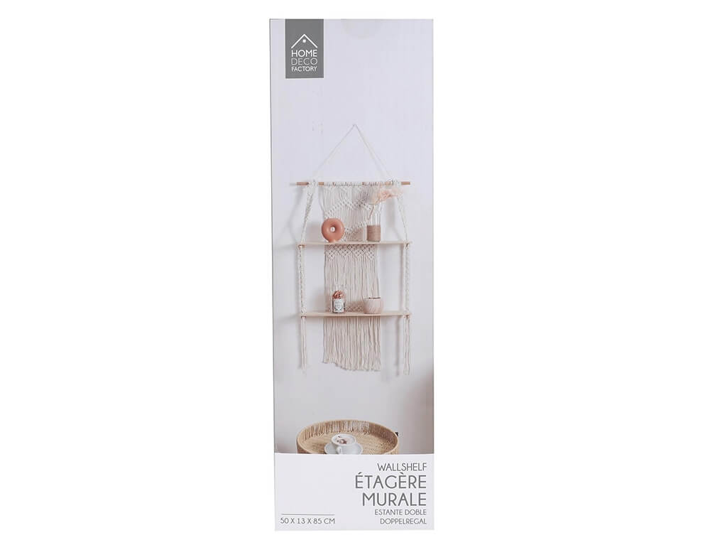 Ραφιέρα τοίχου Μακραμέ Home Deco Factory με 2 ράφια και διαστάσεις 50x13x85cm