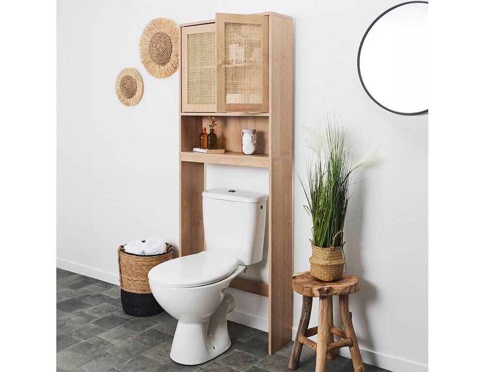 Τακτοποιήστε και οργανώστε το μπάνιο σας με το έπιπλο μπάνιου από την Home Deco Factory. Αποτελείται από δύο πόρτες και τρία ράφια και προσφέρει άφθονο αποθηκευτικό χώρο για να διατηρείτε τα διάφορα καθημερινά σας απαραίτητα καλά οργανωμένα. Είναι κατασκευασμένο από MDF με σχέδιο πλέξης από φυσικό ρατάν στην πόρτα, το οποίο προσθέτει επιπλέον ομορφιά.