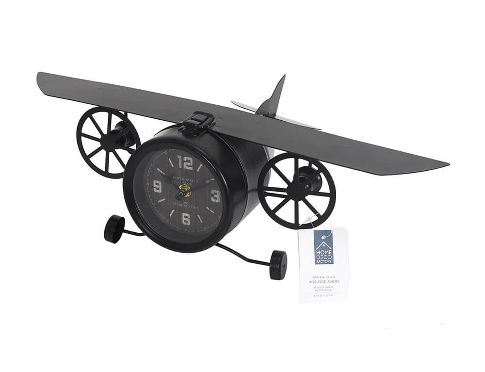 Επιτραπέζιο ρολόι αεροπλάνο Home Deco Factory, Μεταλλικό, 47x26x16cm