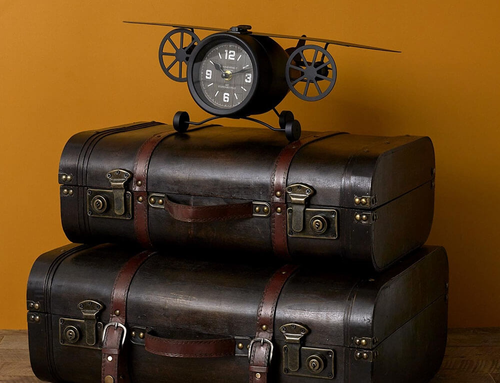 Διακοσμήστε το χώρο σας με το ιδιαίτερο επιτραπέζιο ρολόι σε σχέδιο αεροπλάνου και δώστε μια vintage πινελιά. Διαθέτει αναλογικό καντράν με εφέ ξύλου και λευκούς αριθμούς. Είναι κατασκευασμένο από μέταλλο, γυαλί και πολυπροπυλένιο.