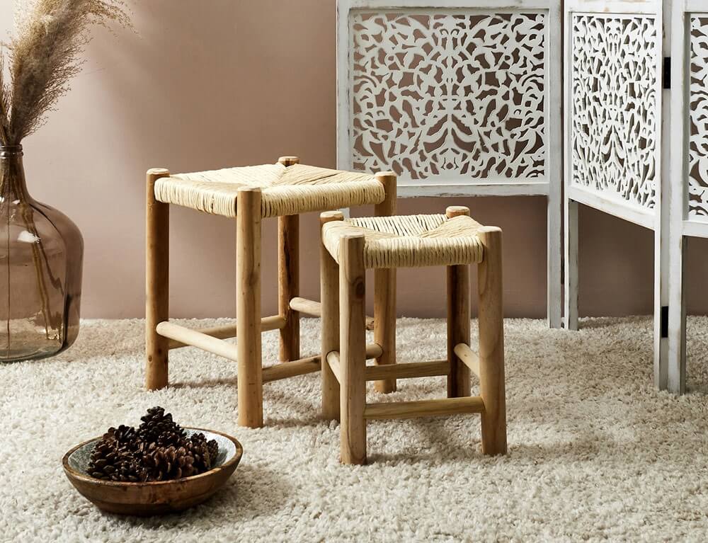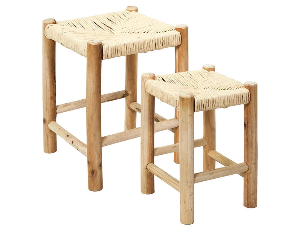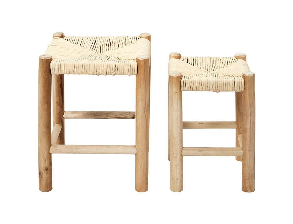 Το σετ με 2 σκαμπώ σε καφέ απόχρωση με πλέξη ψάθας θα δώσει μια boho πινελιά στο χώρο σας. Στηρίζεται σε 4 στιβαρά πόδια από ξύλο paulownia σε καφέ χρώμα που δένουν αρμονικά με το σύνολο. Έχει διακοσμητικό αλλά και χρηστικό χαρακτήρα καθώς μπορείτε να το χρησιμοποιήσετε σαν επιπλέον κάθισμα.