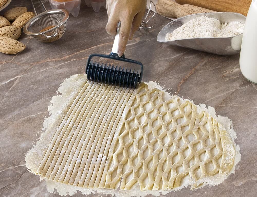 Ο κόφτης ζύμης της Lily Cook είναι το ιδανικό εργαλείο για να τρυπάτε γρήγορα και ομοιόμορφα λωρίδες βάσης τάρτας ή οποιαδήποτε ζύμη ζαχαροπλαστικής. Ο σχεδιασμός των καρφιών σας επιτρέπει να τρυπάτε εύκολα τη ζύμη χωρίς να πιέζετε πολύ τον πλάστη. Οι κόφτες ζαχαροπλαστικής σας επιτρέπουν να δημιουργήσετε ομοιόμορφα διακοσμητικά, κάτι που είναι υπέροχο όταν θέλετε να διακοσμήσετε την κορυφή μιας πίτας ή τάρτας. Αυτό το εργαλείο σάς επιτρέπει να δημιουργείτε γρήγορα και εύκολα ένα ομοιόμορφο μοτίβο σε σχήμα σταυρού σε αρτοσκευάσματα. Για να το κάνετε αυτό, απλά πιέστε ελαφρά τη ζύμη με έναν πλάστη, στη συνέχεια τεντώστε τη ζύμη και τοποθετήστε τη σε χαρτί ψησίματος ή γέμιση πίτας.