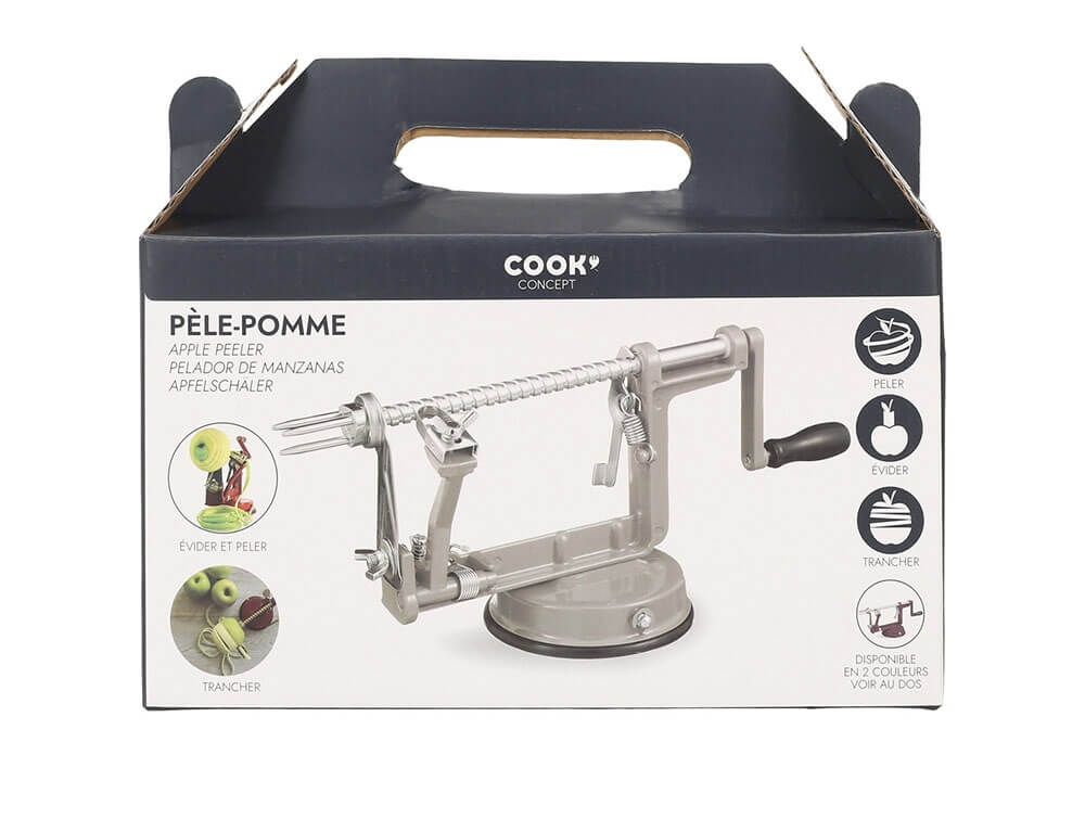 Ο αποφλοιωτής 3 σε 1 της Cook Concept είναι ένα κατάλληλο και απαραίτητο εργαλείο για την κουζίνα σας. Με τον αποφλοιωτή μπορείτε να ξεφλουδίσετε και να κόψετε σε φέτες φρούτα και λαχανικά καθώς και να αφαιρέσετε τον πυρήνα από φρούτα. Είναι κατασκευασμένος από ανοξείδωτο ατσάλι και αλουμίνιο, με κομμάτια από πλαστικό. Έχει ισχυρό κράτημα χάρη στη βεντούζα που διαθέτει στη βάση του.