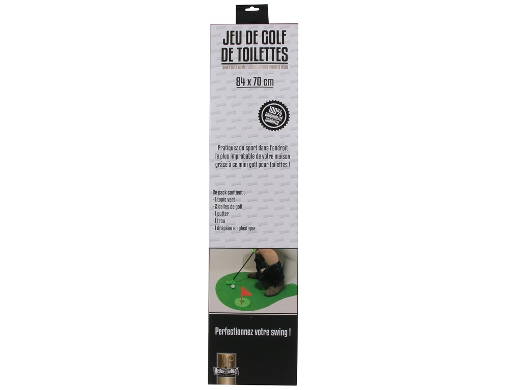 Διασκεδάστε στο πιο ασυνήθιστο μέρος του σπιτιού σας με αυτό το παιχνίδι γκολφ! Αποτελείται από ένα χαλάκι, ένα μπαστόυνι, 2 μπάλες, μια σημαία και μια τρύπα. θα σας απασχολήσει και θα διασκεδάσει τους καλεσμένους σας με εγγυημένη επιτυχία.