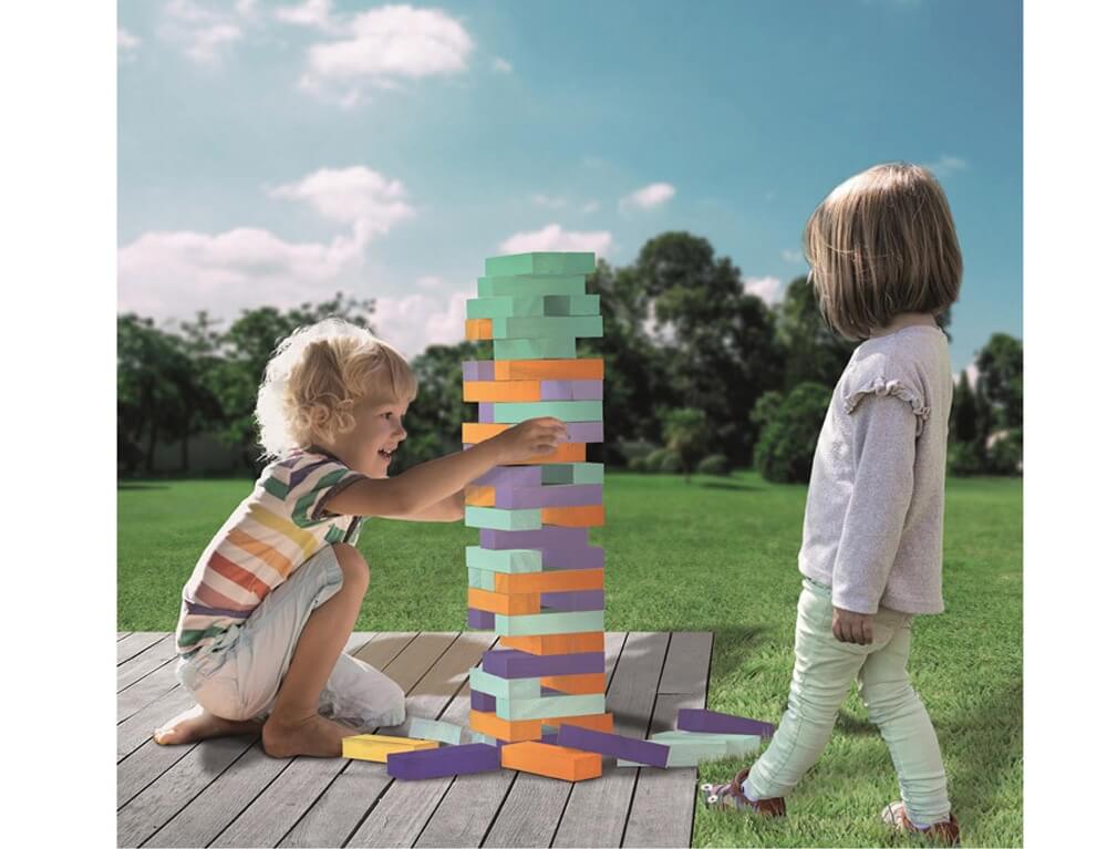 Το επιτραπέζιο παιχνίδι πύργος ισορροπίας, από την εταιρία Mister Gadget, περιλαμβάνει 36 πολύχρωμα τουβλάκια. Σκοπός του παιχνιδιού να αφαιρείται κάθε τουβλάκι χωρίς να πέσει ο πύργος.