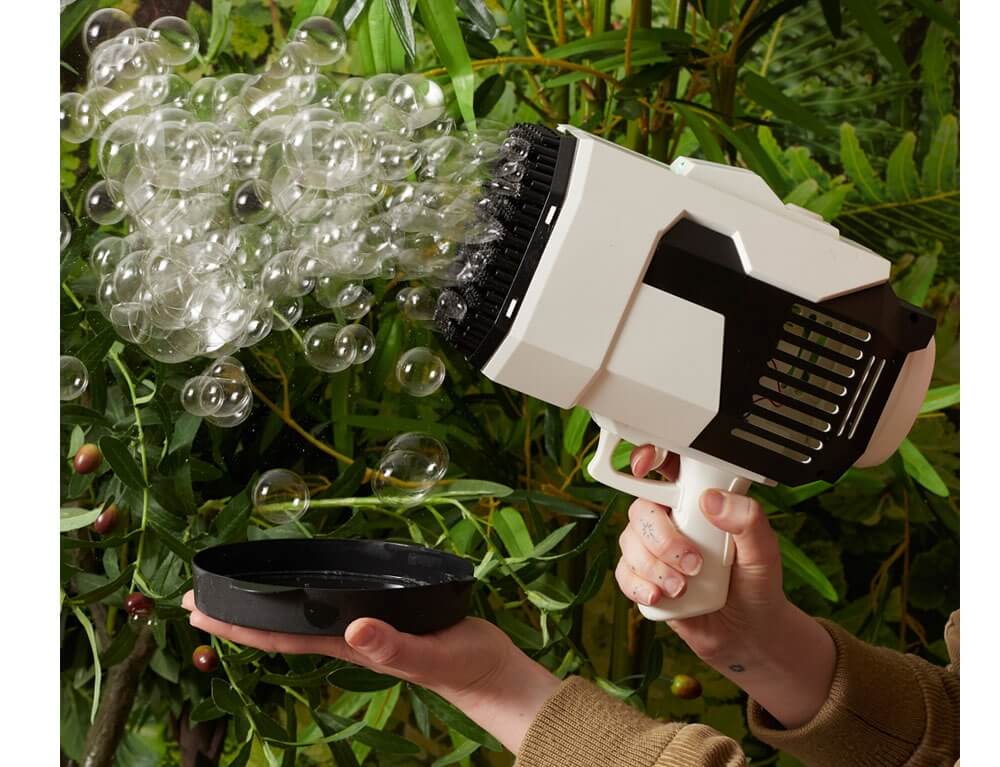 Δώστε στα παιδιά σας αυτό το πιστόλι για φούσκες! Αυτό το πιστόλι θα φέρει επανάσταση στον χρόνο παιχνιδιού σας. Αυτά τα σύννεφα από σαπουνόφουσκες θα καταπλήξουν το παιδί σας και τους φίλους του. Τα παιδιά σας θα λατρέψουν να διασκεδάζουν με αυτό το νέο παιχνίδι και να κυνηγούν τις φυσαλίδες για να τα σκάσουν!