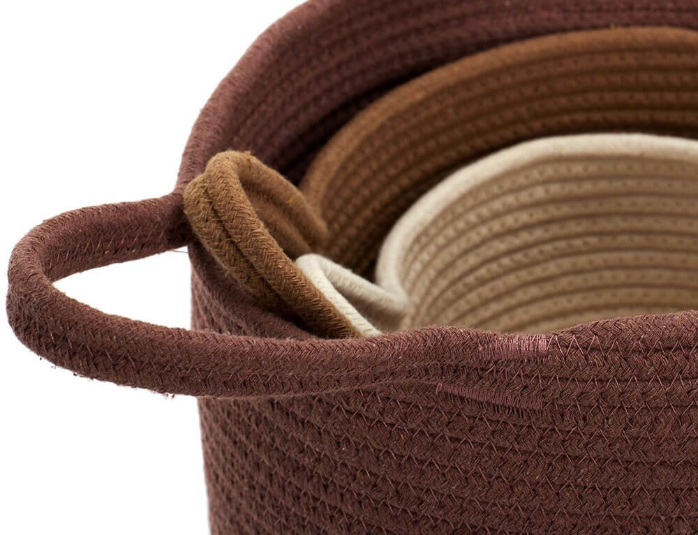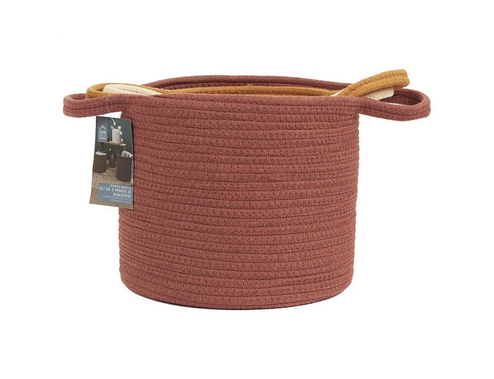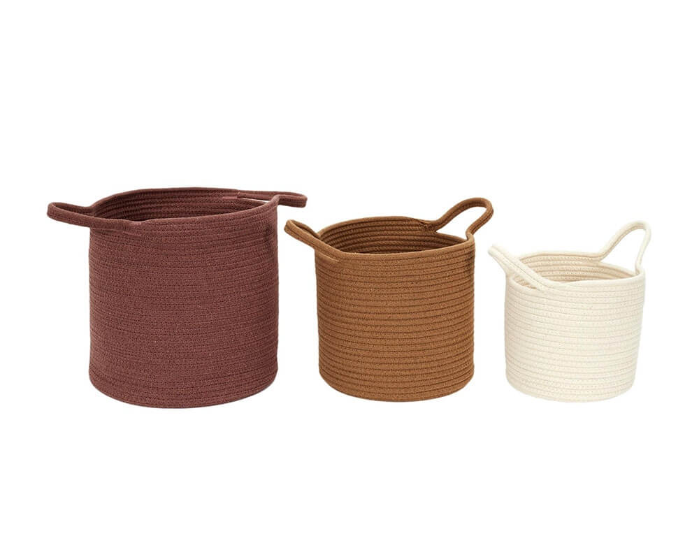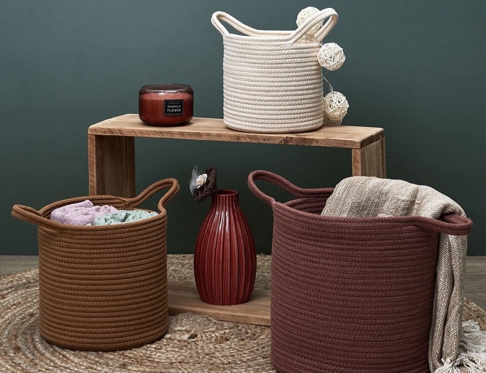 Το σετ διακοσμητικών καλαθιών σε στρογγυλό σχήμα αποτελείται από 3 τεμάχια διαφορετικού μεγέθους. Μπορούν να λειτουργήσουν σαν διακοσμητικά στοιχεία σε οποιαδήποτε γωνία του σπιτιού σας αλλά και σαν αποθηκευτικός χώρος. Ιδανικό για να κρατήσει οργανωμένα τα μικροαντικείμενα, τα περιοδικά και ότι άλλο φανταστείτε, δίνοντας παράλληλα μια φρέσκια ανάσα στο χώρο σας. Επίσης, μπορείτε να τοποθετήσετε στο εσωτερικό του ενα φυτό εσωτερικού χώρου δίνοντας μια boho νότα στο χώρο σας.