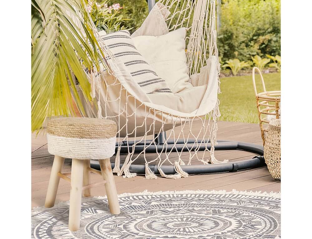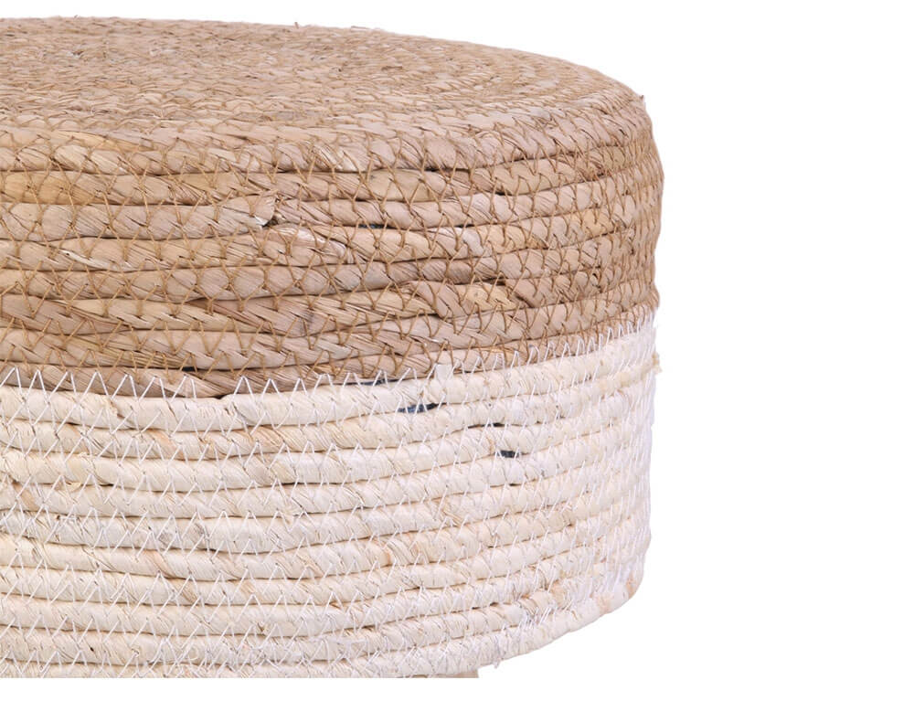 Το σκαμπώ σε καφέ απόχρωση με πλέξη ψάθας θα δώσει μια boho πινελιά στο χώρο σας. Στηρίζεται σε 4 στιβαρά πόδια από ξύλο πεύκου σε καφέ χρώμα που δένουν αρμονικά με το σύνολο και έχει επένδυση αφρού πολυουρεθάνης (PU). Έχει διακοσμητικό αλλά και χρηστικό χαρακτήρα καθώς μπορείτε να το χρησιμοποιήσετε σαν επιπλέον κάθισμα.