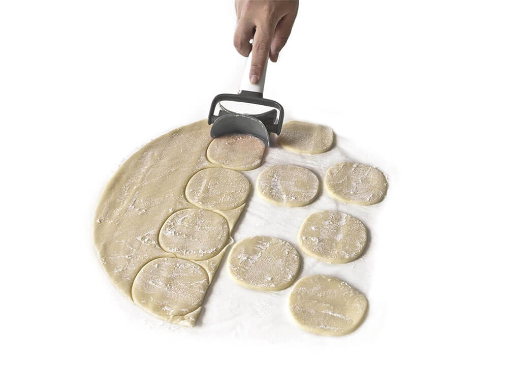 Το ρολό κοπής της Lily Cook είναι το ιδανικό εργαλείο για να κόβετε γρήγορα και ομοιόμορφα τη ζύμη σε στρογγυλό σχήμα. Είναι κατασκευασμένo από ανθεκτικό πλαστικό, ένα υλικό κατάλληλο για επαφή με τρόφιμα. Καθαρίζεται εύκολα και δε χαράζει.