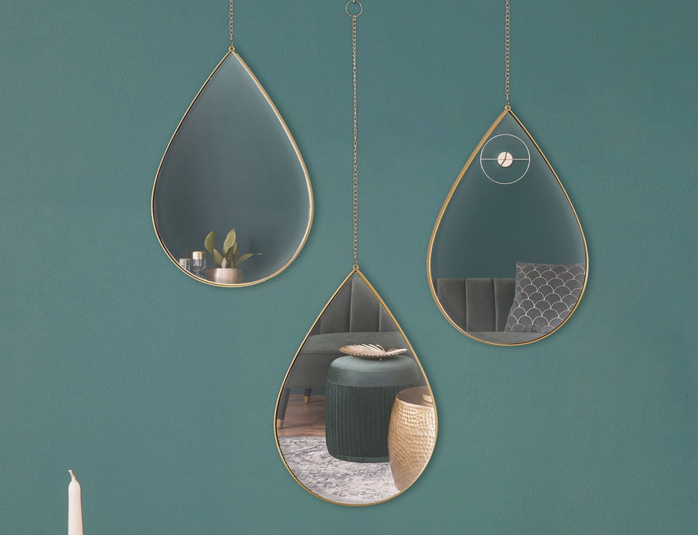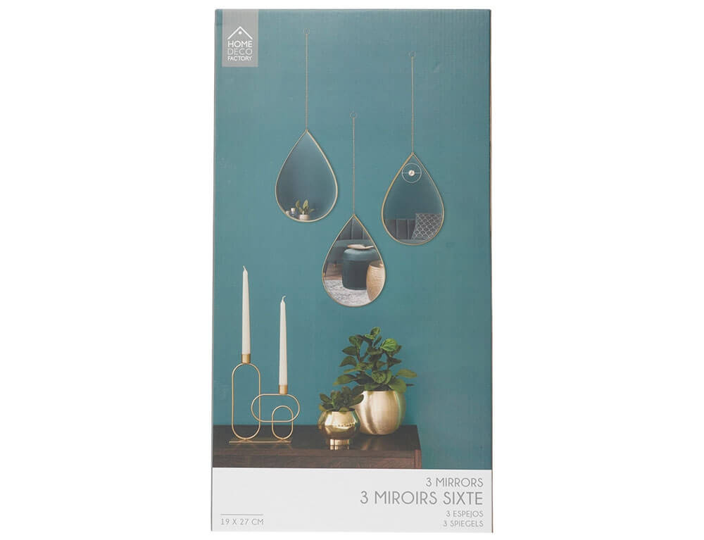 Διακοσμητικός καθρέπτης τοίχου Ηome Deco Factory, σταγόνα, με διαστάσεις 19x1x27cm - 3 τεμάχια