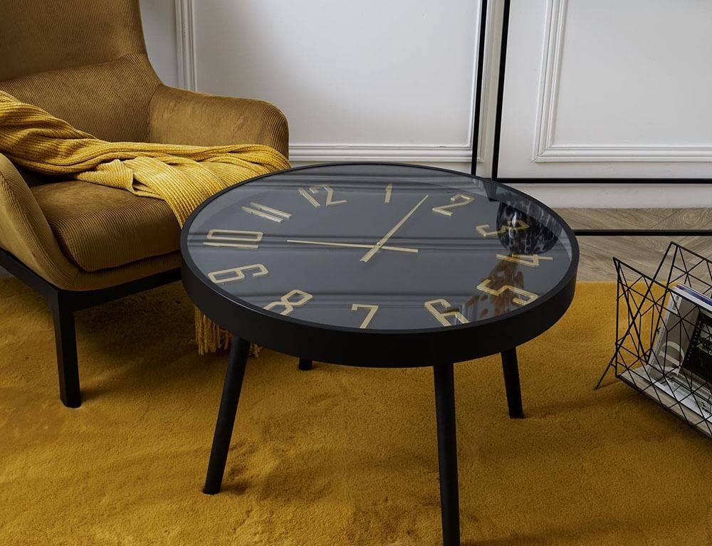 Τραπεζάκι με ρολόι Home Deco Factory με διαστάσεις 70x50cm - MDF & Ξύλο - Απόχρωση Μαύρου