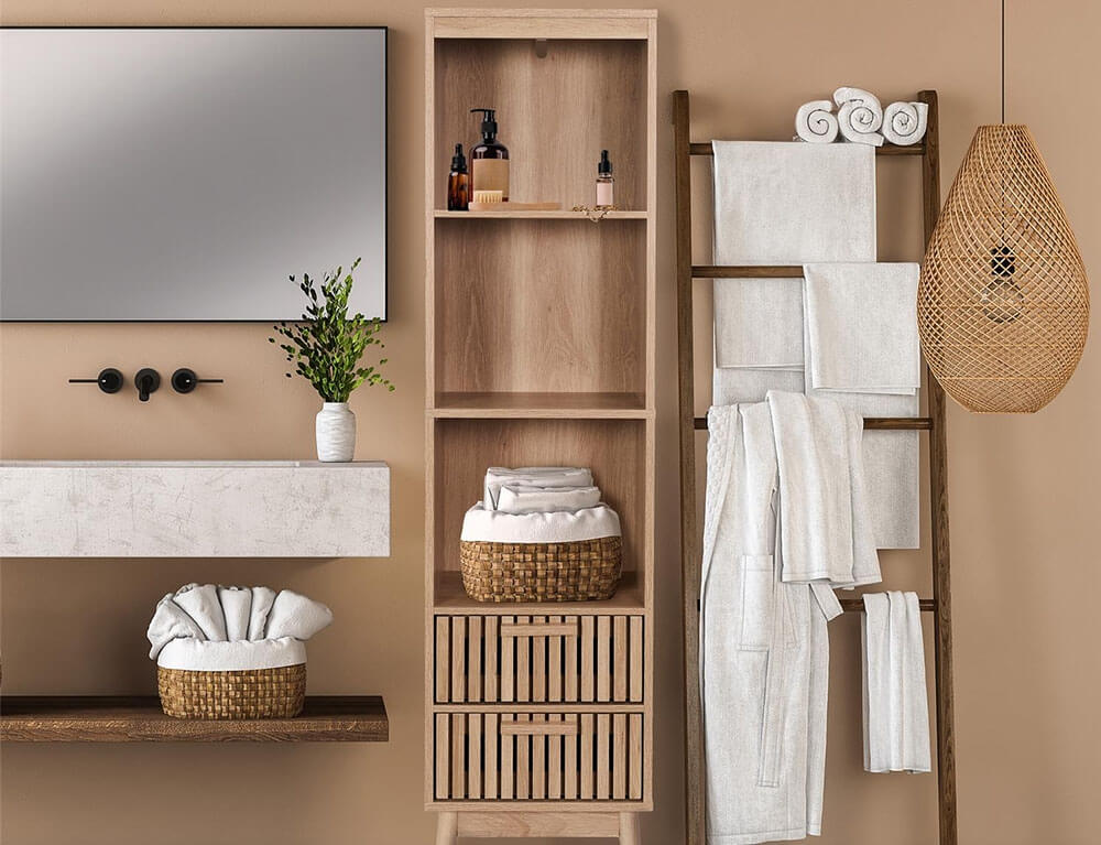 Επιδαπέδια αναδιπλούμενη ραφιέρα μπάνιου Bathroom Solutions Ξύλο Μπαμπού, με 4 ράφια, 40x33.5x93.5cm