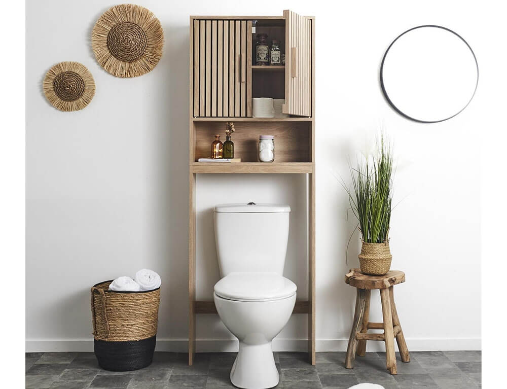 Τακτοποιήστε και οργανώστε το μπάνιο σας με το έπιπλο μπάνιου από την Home Deco Factory. Αποτελείται από δύο πόρτες και ένα ράφι και προσφέρει άφθονο αποθηκευτικό χώρο για να διατηρείτε τα διάφορα καθημερινά σας απαραίτητα καλά οργανωμένα. Είναι κατασκευασμένο από MDF (ινοσανίδα), ένα παράγωγο ξύλου από κομμάτια, ίνες και υπολείμματα ξύλου.