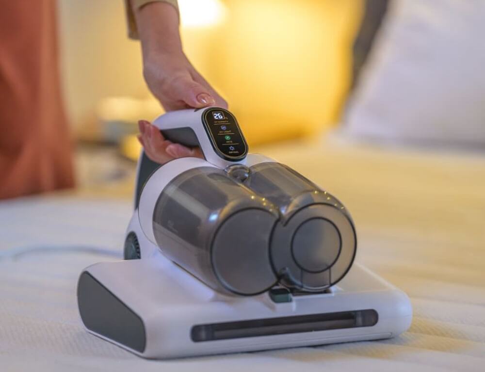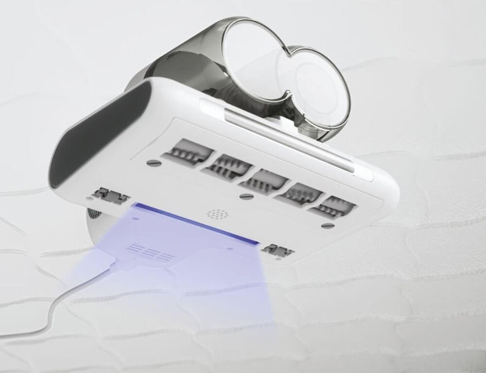 2. Αναρρόφηση: Χάρη στην ισχυρή αναρρόφησή του, μειώνει την έκθεση σε ακάρεα σκόνης και αλλεργιογόνα. Επίσης ιδανικό για την αφαίρεση τρίχας κατοικίδιων ζώων! 3. UV φως: Η υπεριώδης ακτινοβολία μπορεί να βοηθήσει στη μείωση των βακτηρίων, των αλλεργιογόνων και των ακάρεων της σκόνης. Οι ενσωματωμένοι αισθητήρες διασφαλίζουν ότι η λυχνία UV ανάβει μόνο όταν έρχεται σε άμεση επαφή με την επιφάνεια και σβήνει αυτόματα όταν ανασηκώνεται από την επιφάνεια για ησυχία.