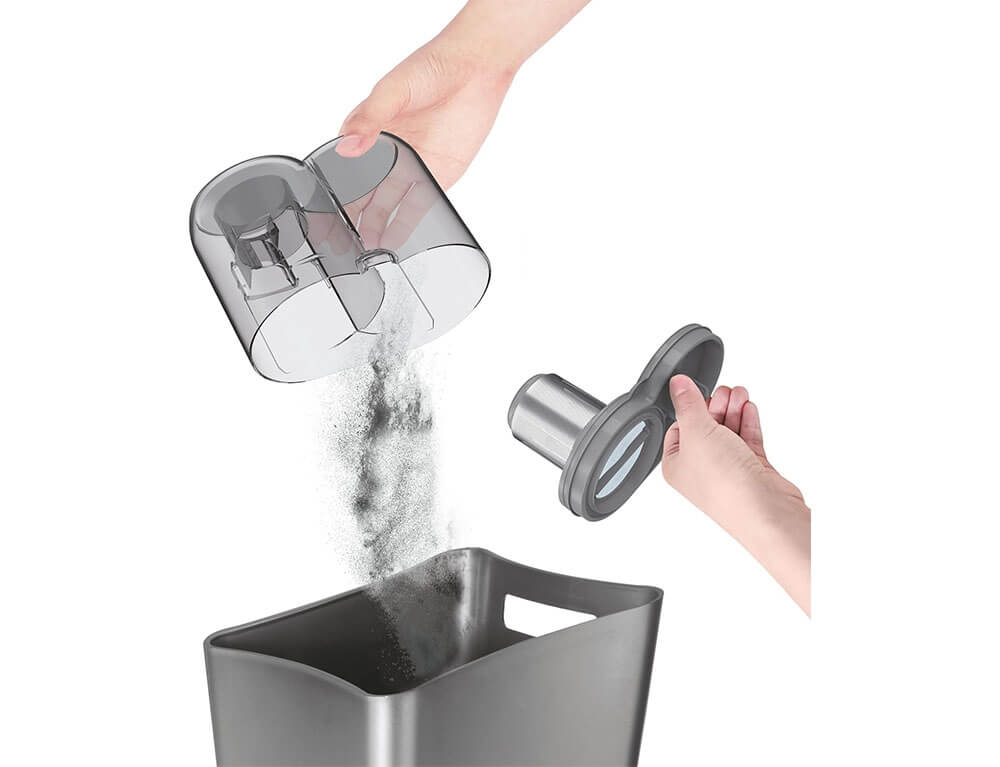 Το δοχείο των 0,6 λίτρων είναι αρκετά μεγάλο για σχολαστικό καθαρισμό, επομένως δεν χρειάζεται να το αδειάσετε μέχρι να τελειώσει η εργασία. Όταν είναι γεμάτο, μπορεί εύκολα να αποσπαστεί για να απορρίψει τη σκόνη και τη βρωμιά. Για να διατηρήσετε την απόδοση, πλένετε τακτικά το δοχείο, τα φίλτρα και το σύστημα διαχωρισμού κάτω από μια βρύση.