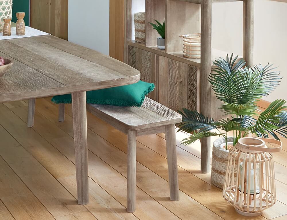Με το παγκάκι Banila της Atmosphera θα δώσετε μια ρουστίκ και μοντέρνα πινελιά στην τραπεζαρία σας. Το παγκάκι είναι δυνατό να προσφέρει περισσότερη άνεση και είναι ιδανικό όταν έχετε καλεσμένους, αφού μπορούν να καθίσουν περισσότερα άτομα. Επίσης, η χρήση παγκακιού μπορεί να είναι μια έξυπνη λύση για την εξοικονόμηση χώρου, καθώς μπορεί εύκολα να αποθηκευτεί κάτω από το τραπέζι όταν δεν χρησιμοποιείται. Είναι κατασκευασμένο από ξύλο ακακίας, ένα ανθεκτικό υλικό με αντοχή στην υγρασία και τους μύκητες και μπορείτε να το καθαρίσετε εύκολα με σαπουνόνερο.