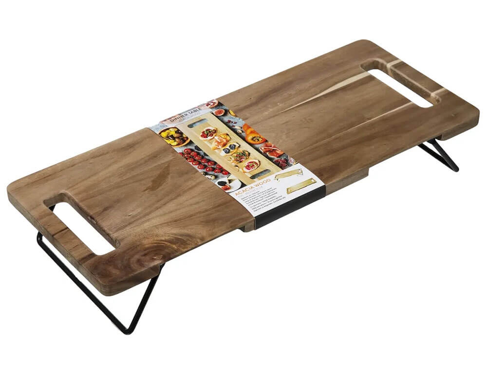 Δίσκος σερβιρίσματος Secret de Gourmet από Ξύλο Ακακίας, με λαβές, πτυσσόμενα πόδια και διαστάσεις 48x20x1.5cm