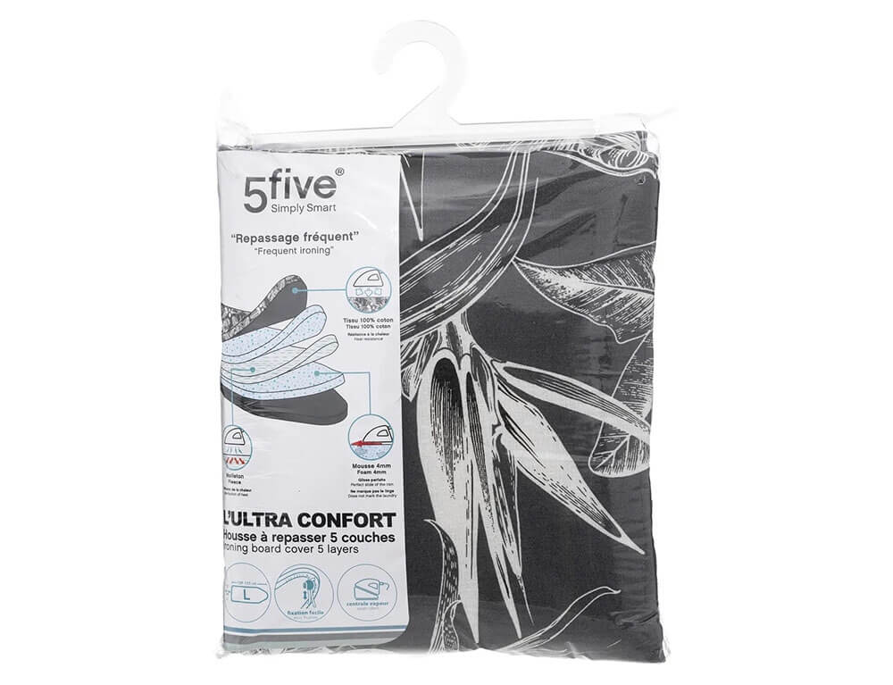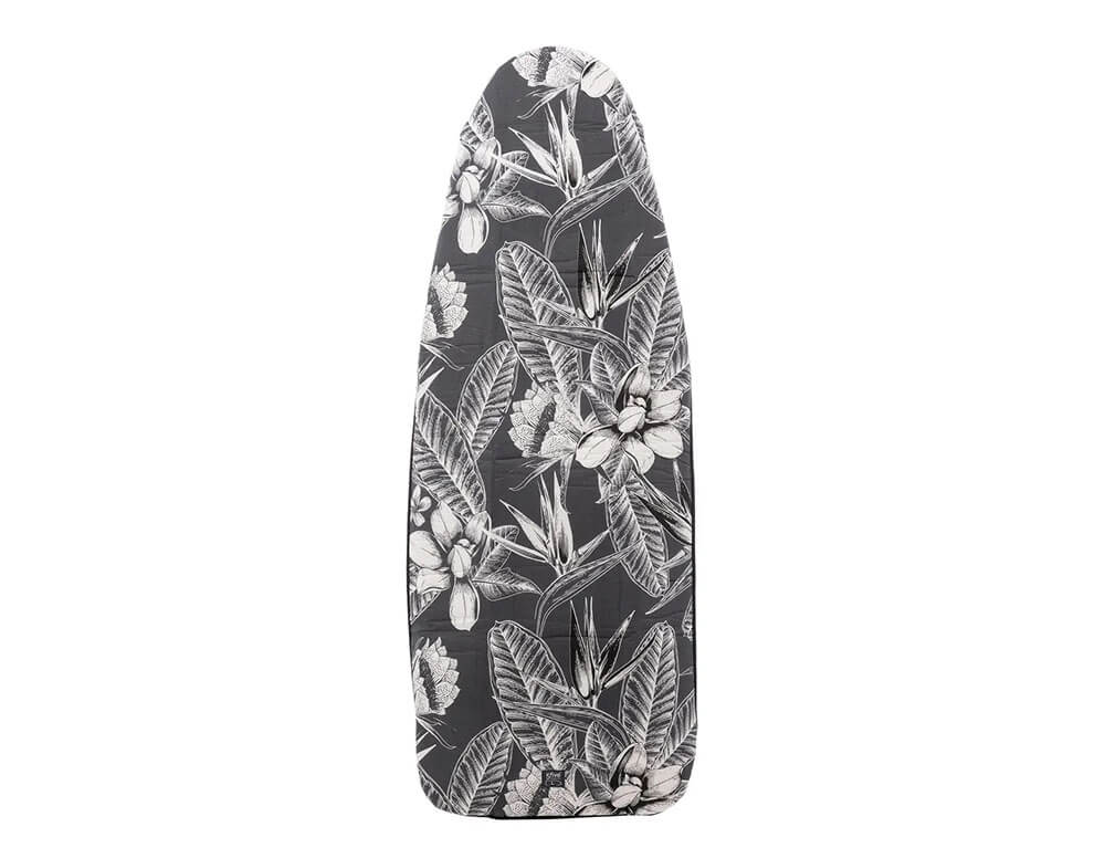 Κάλυμμα σιδερώστρας από τη 5five σε γκρι χρώμα με tropical σχέδιο. Αποτελείται από 5 στρώσεις για περισσότερη άνεση και απόδοση σιδερώματος. Διαθέτει κορδόνι σύσφιξης με κλιπ ελατηρίου για να έχει πλήρη εφαρμογή στη σιδερώστρα σας. Eίναι κατασκευασμένη από βαμβακερό ύφασμα και αφρό πολυουρεθάνης. Είναι κατάλληλο για σιδερώστρες με μέγεθος 128x45cm και 135x48cm.